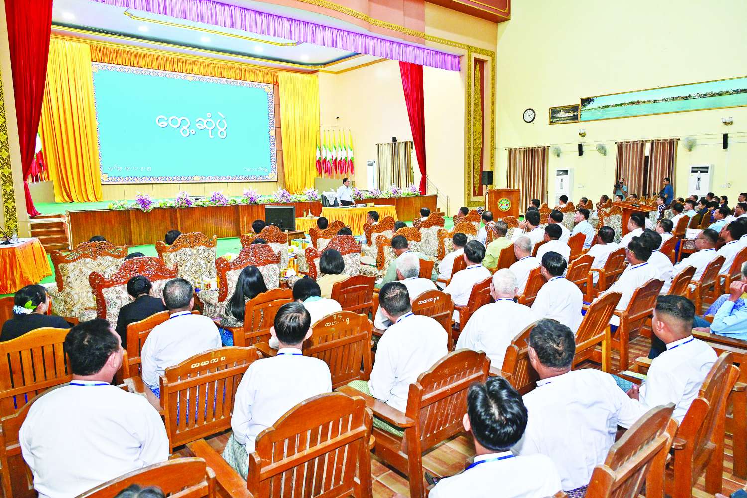 ထို့နောက် မြို့မိမြို့ဖများနှင့် လုပ်ငန်းရှင်များက ပုသိမ်-ရန်ကုန် လမ်းပိုင်းအား အဆင့်မြှင့်တင် ဆောင်ရွက်ပေးစေလိုမှု၊ ပုသိမ်-ငွေဆောင်သွား ကားလမ်းပေါ်ရှိ သလပ်ခွာတံတားအား အဆင့်မြှင့်တင်ဆောင်ရွက်ပေးစေလိုမှု၊ အဆင့်မီဘက်စုံသုံး အားကစားကွင်းတည်ဆောက်ပေးစေလိုမှု၊ နိုင်ငံတော်၏ ကူညီပံ့ပိုးဆောင်ရွက်ပေးမှုများကြောင့် ဧရာဝတီတိုင်းဒေသကြီးအတွင်း စိုက်ပျိုးရေးလုပ်ငန်းများ ပိုမိုတိုးတက်ကောင်းမွန်လာမှု၊ ပီလောပီနံများစိုက်ပျိုးထုတ်လုပ်မှု ပိုမိုတိုးတက်ထုတ်လုပ်နိုင်ရေး ကူညီဆောင်ရွက်ပေးစေလိုမှု၊ စပါးခွံလောင်စာသုံး လျှပ်စစ်ဓာတ်အားထုတ်လုပ်ရေး လုပ်ငန်းများဆောင်ရွက်လျက်ရှိမှု၊ MSME ကုန်ထုတ်လုပ်ငန်းများအား နိုင်ငံတကာနှင့်ပူးပေါင်းဆောင်ရွက်လျက်ရှိမှု အခြေအနေများနှင့် ပတ်သက်၍ရှင်းလင်းတင်ပြသည်။