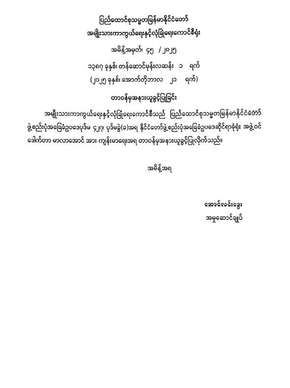 တာဝန်မှအနားယူခွင့်ပြုခြင်း