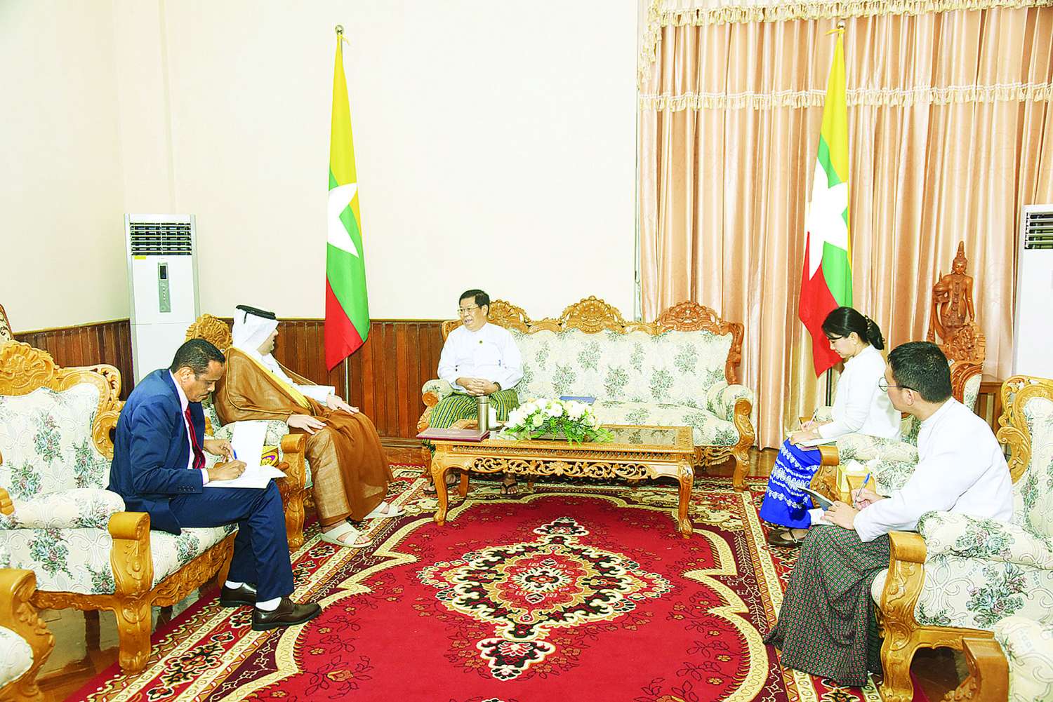 နိုင်ငံခြားရေးဝန်ကြီးဌာန ပြည်ထောင်စုဝန်ကြီး ဦးသန်းဆွေသည် တာဝန်ထမ်းဆောင်မှုကာလပြီးဆုံး၍ မြန်မာနိုင်ငံမှပြန်လည်ထွက်ခွာတော့မည့် ကာတာသံရုံးယာယီတာဝန်ခံ ဒေါက်တာ ရာရှစ် အက်ဘ်ဒူလာ အမ်အေအယ်လ်ကူဝါရီအား ယနေ့ ညနေ ၃ နာရီတွင် နေပြည်တော်ရှိ နိုင်ငံခြားရေးဝန်ကြီးဌာန၌ လက်ခံတွေ့ဆုံသည်။