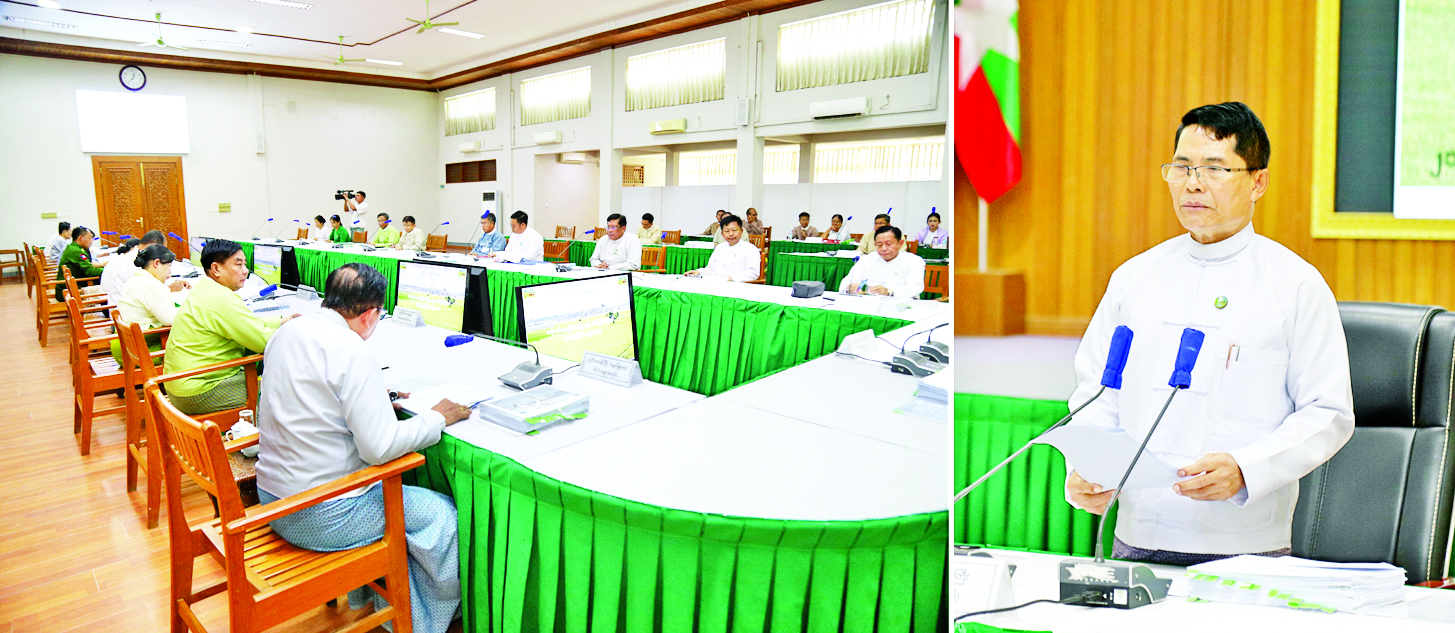 ယနေ့အစည်းအဝေးတွင် မြေလွတ်၊မြေလပ်နှင့်မြေရိုင်းလုပ်ကိုင်ခွင့်ရရှိထားပြီး စိုက်ပျိုးလုပ်ကိုင်မှု တည်ငြိမ်နေသည့်မြေများအား လယ်ယာမြေဥပဒေ၊ နည်းဥပဒေများအရ လယ်ယာမြေအဖြစ်သတ်မှတ်ပေးရန် လျှောက်ထားလာသောလုပ်ငန်းများ၊ နိုင်ငံတော်စီမံကိန်းများဆောင်ရွက်ရာတွင် နစ်နာကြေး၊ လျော်ကြေးပေးချေရန်ကိစ္စရပ်များ၊ လယ်ယာမြေကို ခွင့်ပြုချက်မရရှိဘဲ အခြားနည်းဖြင့် အသုံးပြုခြင်းများကို ဖြေရှင်းနိုင်ရန်နှင့် နောင်ထပ်မံမဖြစ်ပွားစေရေးအတွက် ထိန်းချုပ်နိုင်ရန်ဆောင်ရွက်မည့် စံပြုလုပ်ထုံးလုပ်နည်းများနှင့်အညီတင်ပြလာသည့် လုပ်ငန်းများအပေါ် ဆွေးနွေးဆောင်ရွက်ခဲ့ကြကြောင်း သိရသည်။