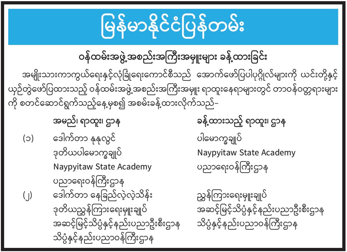 ဝန်ထမ်းအဖွဲ့အစည်းအကြီးအမှူးများ ခန့်ထားခြင်း