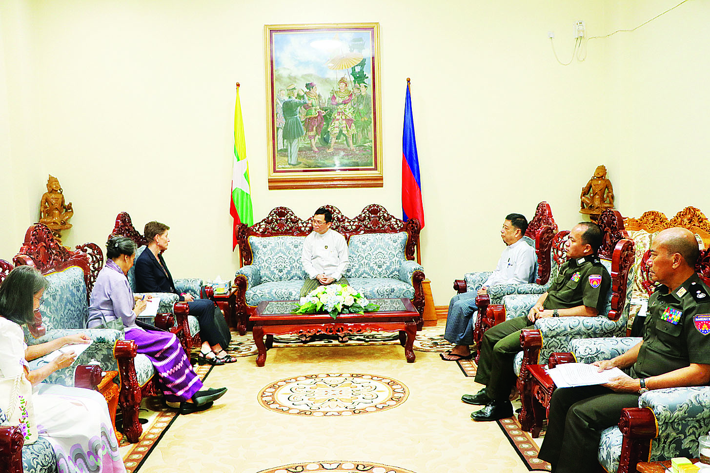 ပြည်ထောင်စုဝန်ကြီး ဦးမြင့်ကြိုင် မြန်မာနိုင်ငံဆိုင်ရာ ကုလသမဂ္ဂယာယီဌာနေညှိနှိုင်းရေးမှူးနှင့် လူသားချင်းစာနာထောက်ထားမှုဆိုင်ရာ ယာယီညှိနှိုင်းရေးမှူးနှင့် အဖွဲ့အား လက်ခံတွေ့ဆုံ