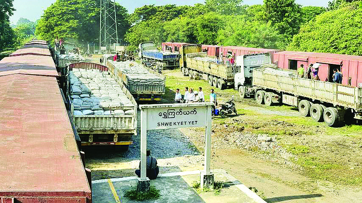 အမျိုးသားသဘာဝဘေးအန္တရာယ်ဆိုင်ရာစီမံခန့်ခွဲမှုကော်မတီ၏အစီအစဉ်ဖြင့် မန္တလေးတိုင်းဒေသကြီးနှင့် စစ်ကိုင်းတိုင်းဒေသကြီးတို့ရှိ ငလျင်ဘေးဒဏ် ပြန်လည်ထူထောင်ရေးနှင့် တည်ဆောက်ရေးလုပ်ငန်းများအတွက် လိုအပ်သော ဆောက်လုပ်ရေးသုံးပစ္စည်းများကို အထူးကုန်ရထားများဖြင့် ပို့ဆောင်ပေးလျက်ရှိရာ ယခုအခါ HRB 500 အမျိုးအစားသံချောင်းလုံး တန်ချိန် ၂၂၂၉ ဒသမ ၆၃ တန်၊ 4 Angle 0.33 mm အမိုးသွပ်ပြားချပ်ရေ ၄၉၀၀၀ (တန်ချိန် ၂၂၇ ဒသမ ၉၁ တန်) နှင့် ဘိလပ်မြေအိတ် ၁၉၄၆၀ (တန်ချိန် ၉၇၃ တန်) တို့ကို ပို့ဆောင်ရောက်ရှိခဲ့ပြီးဖြစ်ကြောင်း သိရှိရသည်။