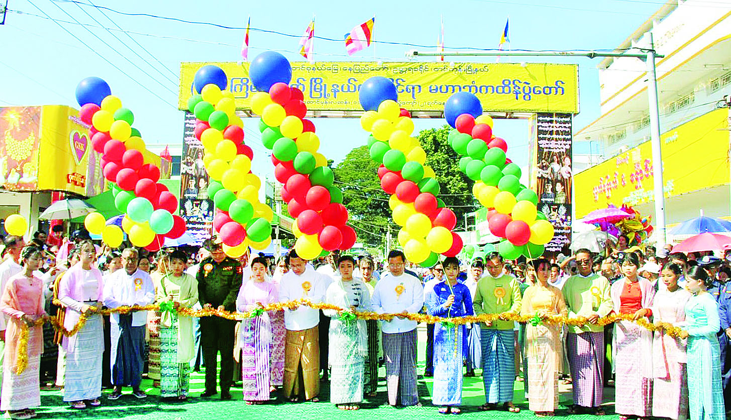 ထို့နောက် ပြည်ထောင်စုဝန်ကြီး ဦးမောင်မောင်အုန်း၊ နေပြည်တော်ကောင်စီဝင် ဦးဇေယျာလင်း နှင့် မြို့မိမြို့ဖများက (၅၅)ကြိမ်မြောက် တပ်ကုန်းမြို့နယ်လုံးဆိုင်ရာ မဟာဘုံကထိန်ပွဲတော် မုခ်ဦး ကို ဖဲကြိုးဖြတ်ဖွင့်လှစ်ပေးကြသည်။