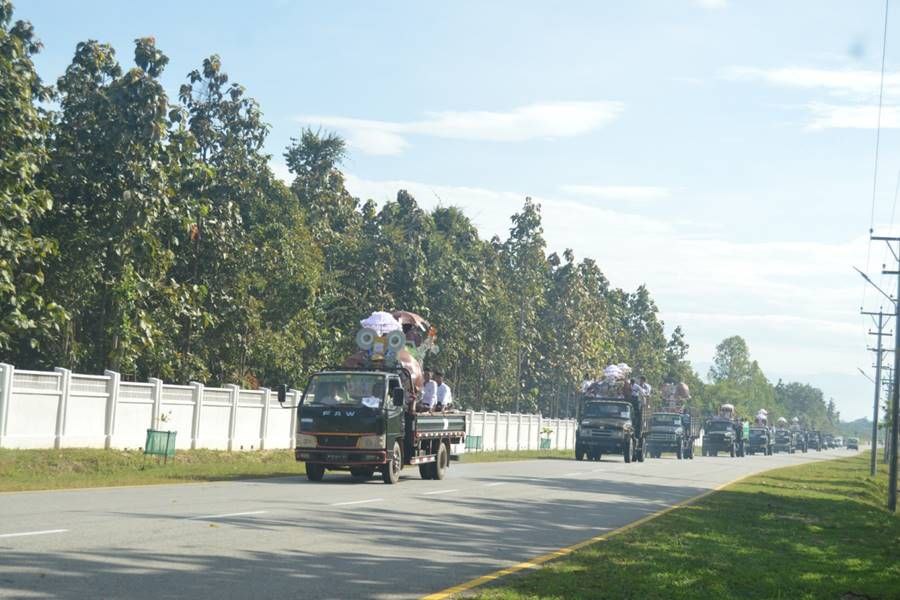 မဟာဘုံကထိန် ဆက်ကပ်လှူဒါန်းပွဲများကို တိုင်းစစ်ဌာနချုပ်များတွင် ကျင်းပပြုလုပ်လျက်ရှိရာ ယနေ့တွင် အရှေ့အလယ်ပိုင်းတိုင်းစစ်ဌာနချုပ်၊ အရှေ့တောင်တိုင်းစစ်ဌာနချုပ်၊ အနောက်ပိုင်းတိုင်းစစ်ဌာနချုပ်နှင့် တောင်ပိုင်းတိုင်းစစ်ဌာနချုပ်တို့ရှိ သတ်မှတ်နေရာအသီးသီး၌ ပြုလုပ်ကြရာ တိုင်းဒေသကြီးနှင့် ပြည်နယ်ဝန်ကြီးချုပ်များ၊ ကာကွယ်ရေးဦးစီးချုပ်ရုံး(ကြည်း)မှ တပ်မတော်အရာရှိကြီးများ၊ တိုင်းမှူးများနှင့် တာဝန်ရှိသူများ၊ ဖိတ်ကြားထားသူများ၊ အလှူရှင်များ တက်ရောက်ကြသည်။