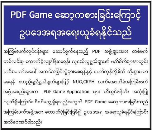 PDF Game ဆော့ကစားခြင်းကြောင့် ဥပဒေအရအရေးယူခံရနိုင်သည် 11/10/2025 PDF Game ဆော့ကစားခြင်းကြောင့် ဥပဒေအရအရေးယူခံရနိုင်သည်