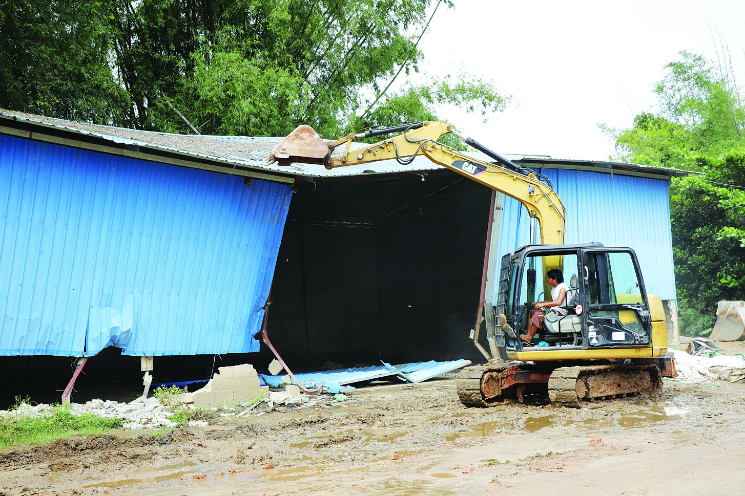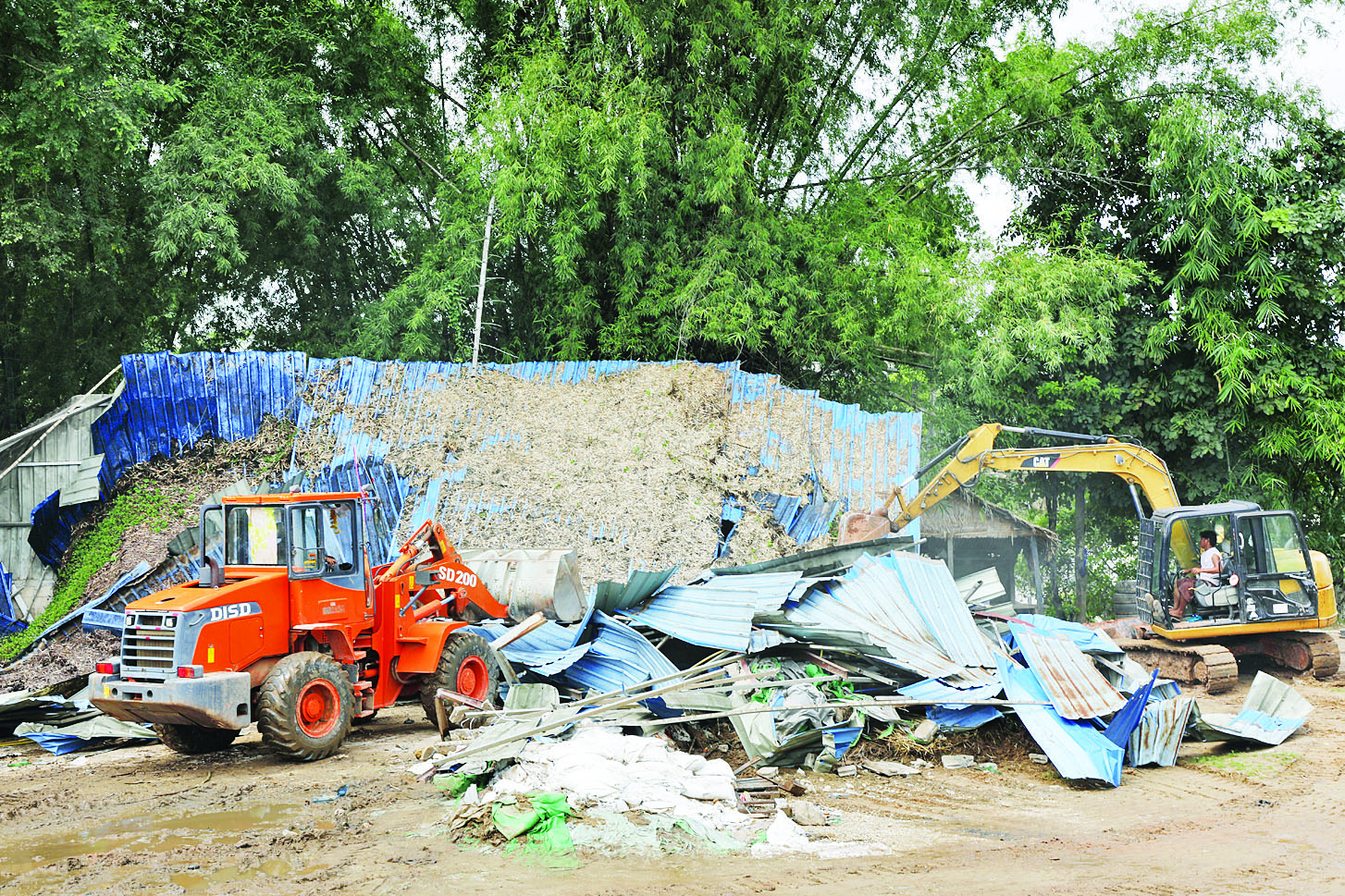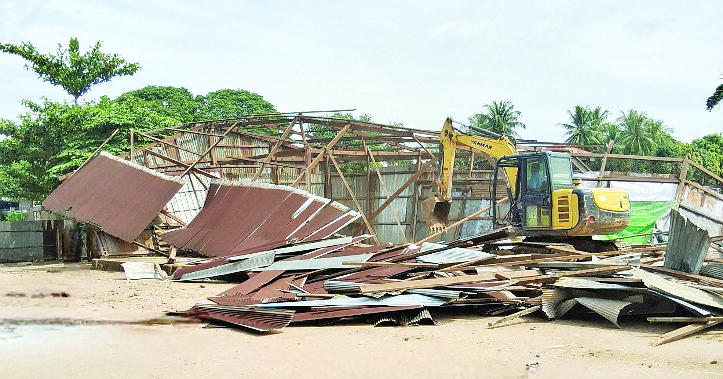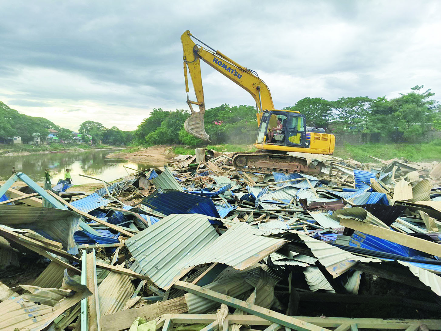 မြဝတီမြို့နယ် သောင်ရင်းမြစ်ကမ်းတစ်လျှောက်ရှိ တရားမဝင်ဖွင့်လှစ်ထားသည့် ကုန်သွယ်ရေးဂိတ်များနှင့် အဆောက်အအုံများ ဖျက်ဆီးရှင်းလင်း