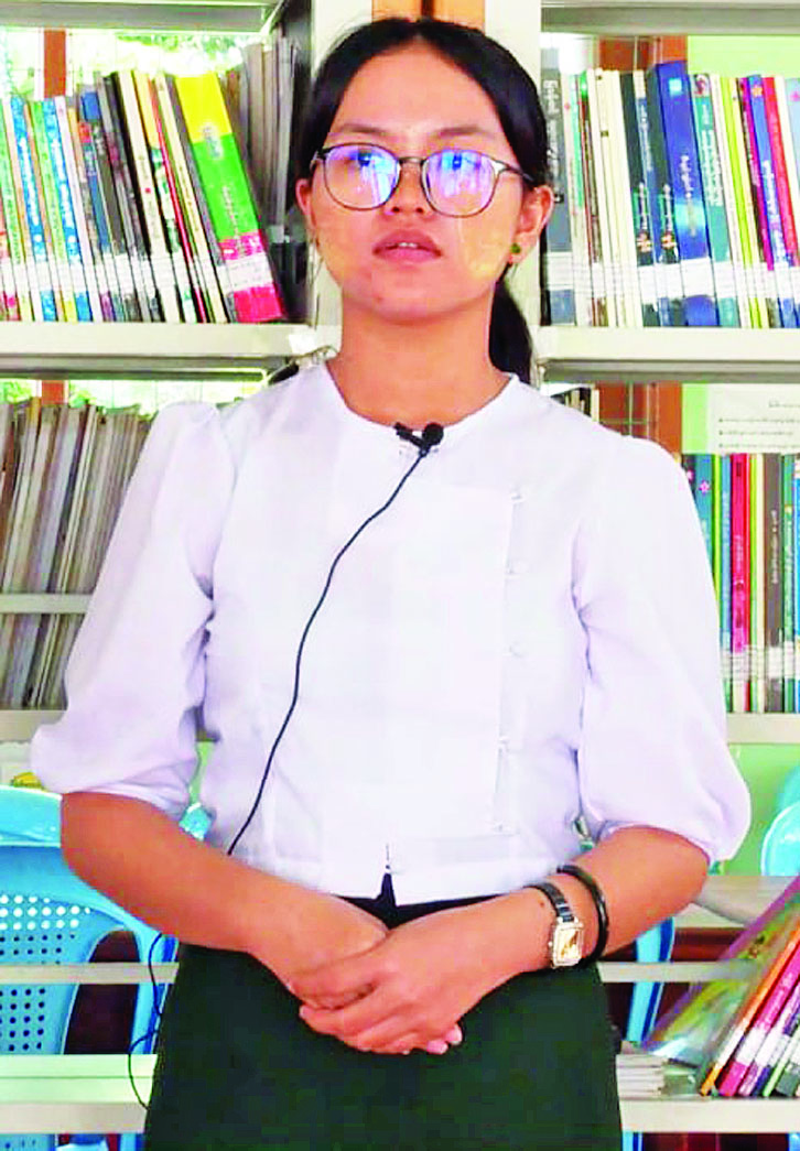 ကျွန်မကတော့ Grade-12 STEAM-1 ကျောင်းသူဖြစ်ပါတယ်။ တိုက်ပွဲဖြစ်တဲ့အချိန်မှာ ကျွန်မတို့ မန္တလေးဘက်မှာ သွားရှောင်နေရပါတယ်။ ကိုယ်နေဖူးတဲ့ဒေသမဟုတ်တဲ့အတွက်ကြောင့် မပျော်ခဲ့ဘူး။ အခက်အခဲတွေရှိခဲ့ပါတယ်။ အခုကတော့ ကျွန်မတို့ ကျောက်မဲမြို့မှာ ကျောင်းပြန်ဖွင့်နေပြီဖြစ်တဲ့အတွက် ကိုယ့်အိမ်၊ ကိုယ့်ဒေသမှာ နေခွင့်ရတယ်၊ ကျောင်းလည်း ပြန်တက်ခွင့်ရတဲ့အတွက် တကယ်ကို ဝမ်းသာမိပါတယ်။