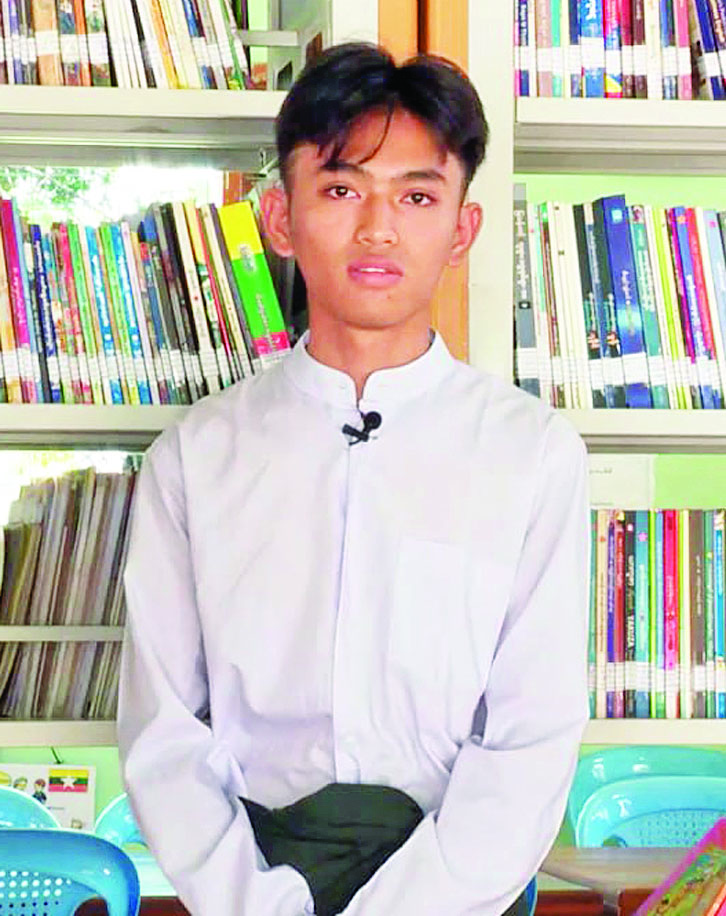 ကျွန်တော်ကတော့ အ.ထ.က (၁) Grade-12 STEAM-1 က ကျောင်းသားတစ်ဦးဖြစ်ပါတယ်။ ကျောင်းတက်နေစဉ် ရုတ်တရက်ဖြစ်ရတဲ့တိုက်ပွဲကြောင့် ခေတ္တနေရပ်ရှောင်ခဲ့ရပါတယ်။ တခြားမြို့၊ တခြားရွာမှာ သွားနေခဲ့ရပါတယ်။ ကိုယ့်အရပ်ဒေသမဟုတ်တဲ့အတွက် အခက်အခဲများစွာ ရှိခဲ့ပါတယ်။ ကျောင်းတွေဖွင့်တော့ ကျောင်းတက်ချင်မိပါတယ်။ အခုကတော့ ကိုယ့်နေရပ်မှာ ကျောင်းပြန်တက်ရတော့ အင်မတန်ပျော်မိပါတယ်။ ကျောင်းနားပြီး စိတ်ကအပြင်ရောက်တာနဲ့စာရင် ကျောင်းပညာရေးမှာ စိတ်နှစ်ထားတာက ပိုပြီးကောင်းပါတယ်။