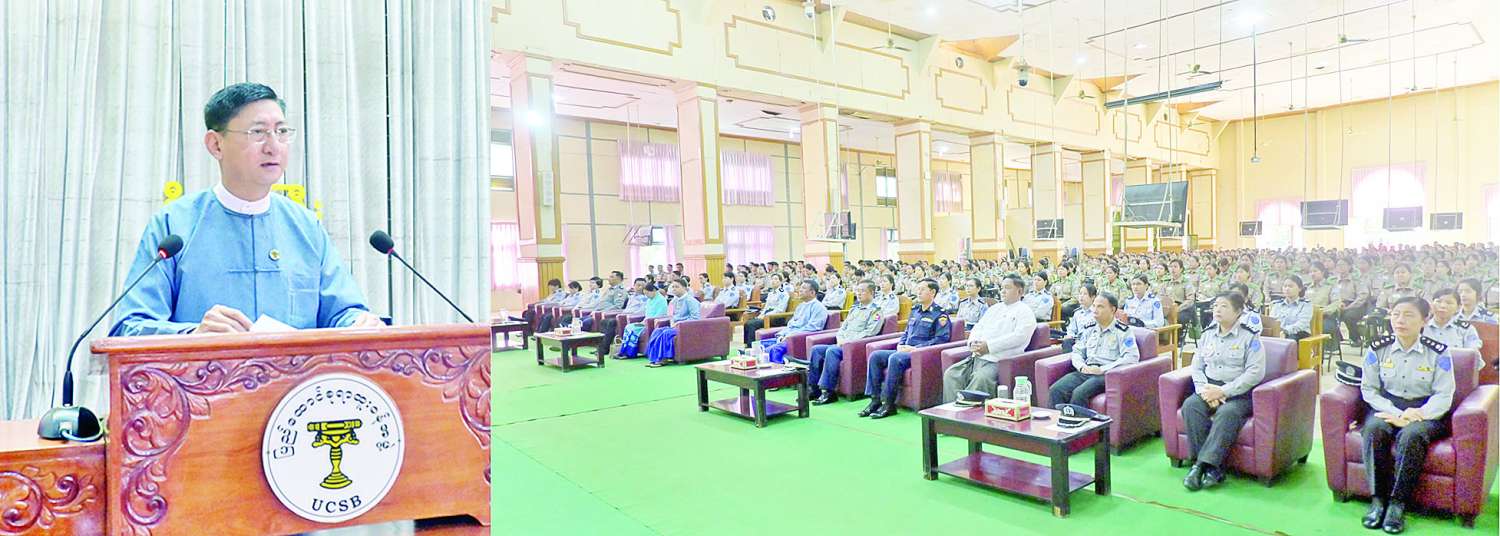 ဦးစွာ ပြည်ထောင်စုရာထူးဝန်အဖွဲ့ဥက္ကဋ္ဌ ဦးစိုးမင်းဦးက နိုင်ငံတော်ရေရှည်တည်တံ့ခိုင်မြဲရေးနှင့် ဘက်စုံဖွံ့ဖြိုးတိုးတက်ရေးအတွက် ပညာရည်မြင့်မားရေးသည် အဓိကလိုအပ်ချက်ဖြစ်ကြောင်း၊ နိုင်ငံသားတိုင်းတွင် အသိပညာ၊ အတတ်ပညာ၊ အတွေးအခေါ်နှင့် ဗဟုသုတများ ပြည့်ဝရန်လိုအပ်ပါကြောင်း၊ ဆရာ၊ ဆရာမများအနေဖြင့် အနာဂတ်နိုင်ငံတော်ကို ပုံဖော်ထုဆစ်မည့် ကျောင်းသား၊ လူငယ်များအား ပညာကိုဆုံးခန်းတိုင်သင်ယူနိုင်စေရန်၊ စာတော်ရုံသာမက လိမ္မာယဉ်ကျေးပြီး ဘက်စုံထူးချွန်သည့် လူရည်ချွန်၊ လူရည်မွန်များဖြစ်ကာ အတတ်ပညာရှင်၊ အသိပညာရှင်များဖြစ်လာစေရန် ဦးတည်သင်ကြားပေးရမည်ဖြစ်ကြောင်း။