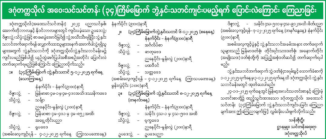 ဒဂုံတက္ကသိုလ် အဝေးသင်သင်တန်း (၃၄) ကြိမ်မြောက် ဘွဲ့နှင်းသဘင်ကျင်းပမည့်ရက် ပြောင်းလဲကြောင်း ကြေညာခြင်း 11/12/2025
