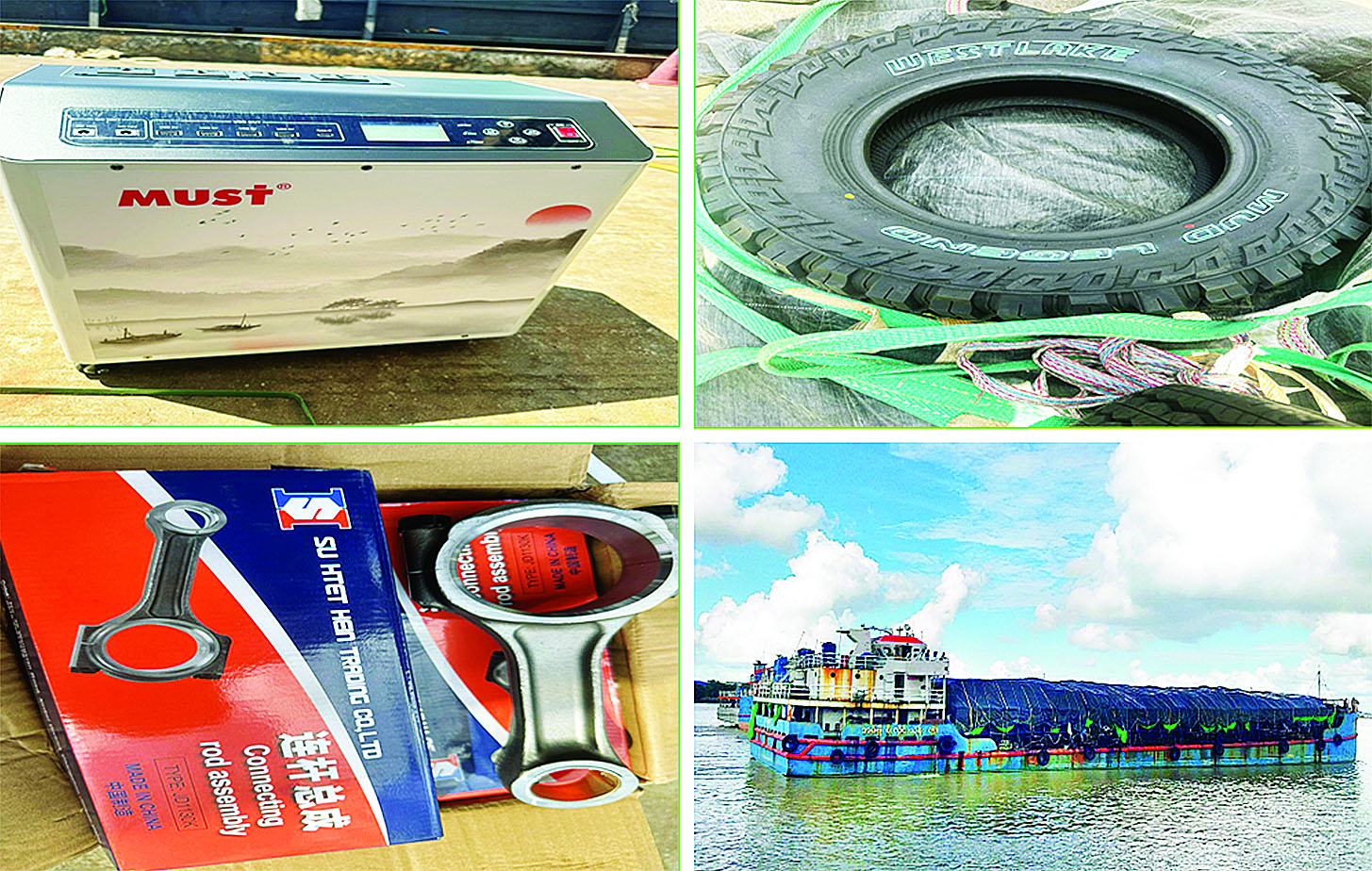 တရားမဝင် သစ်မျိုးစုံ၊ စားသောက်ကုန်ပစ္စည်းများ၊ လုပ်ငန်းသုံးပစ္စည်းများ၊ လူသုံးကုန်ပစ္စည်းများ၊ လိုင်စင်မဲ့မော်‌တော်ယာဉ်၊ တရားမဝင်ကုန်ပစ္စည်းတင် မော်တော်ယာဉ်များနှင့် ရေယာဉ်ဖမ်းဆီးရမိ