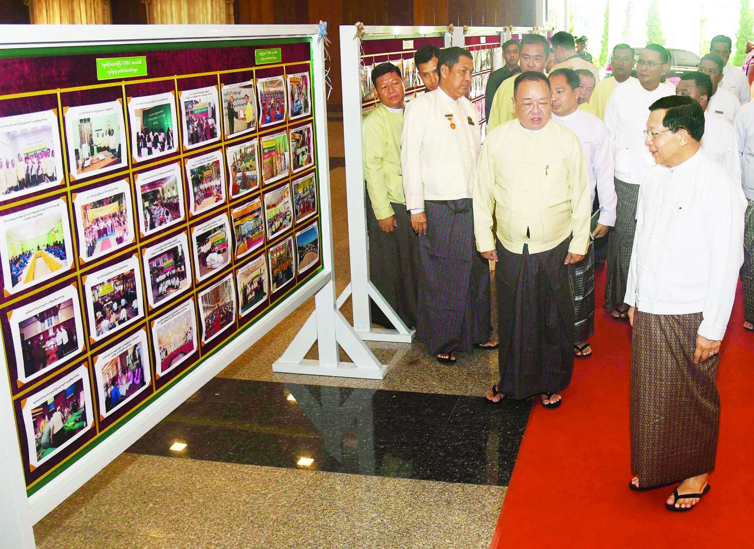 ဦးစွာ နိုင်ငံတော်ယာယီသမ္မတ နိုင်ငံတော်လုံခြုံရေးနှင့်အေးချမ်းသာယာရေးကော်မရှင်ဥက္ကဋ္ဌ ဗုဒ္ဓဘာသာကလျာဏယုဝအသင်း ရာသက်ပန်နာယကကြီးနှင့် အဖွဲ့ဝင်များသည် ဗုဒ္ဓဘာသာကလျာဏယုဝအသင်း မှတ်တမ်းဓာတ်ပုံပြခန်းအား ကြည့်ရှုကြသည်။
