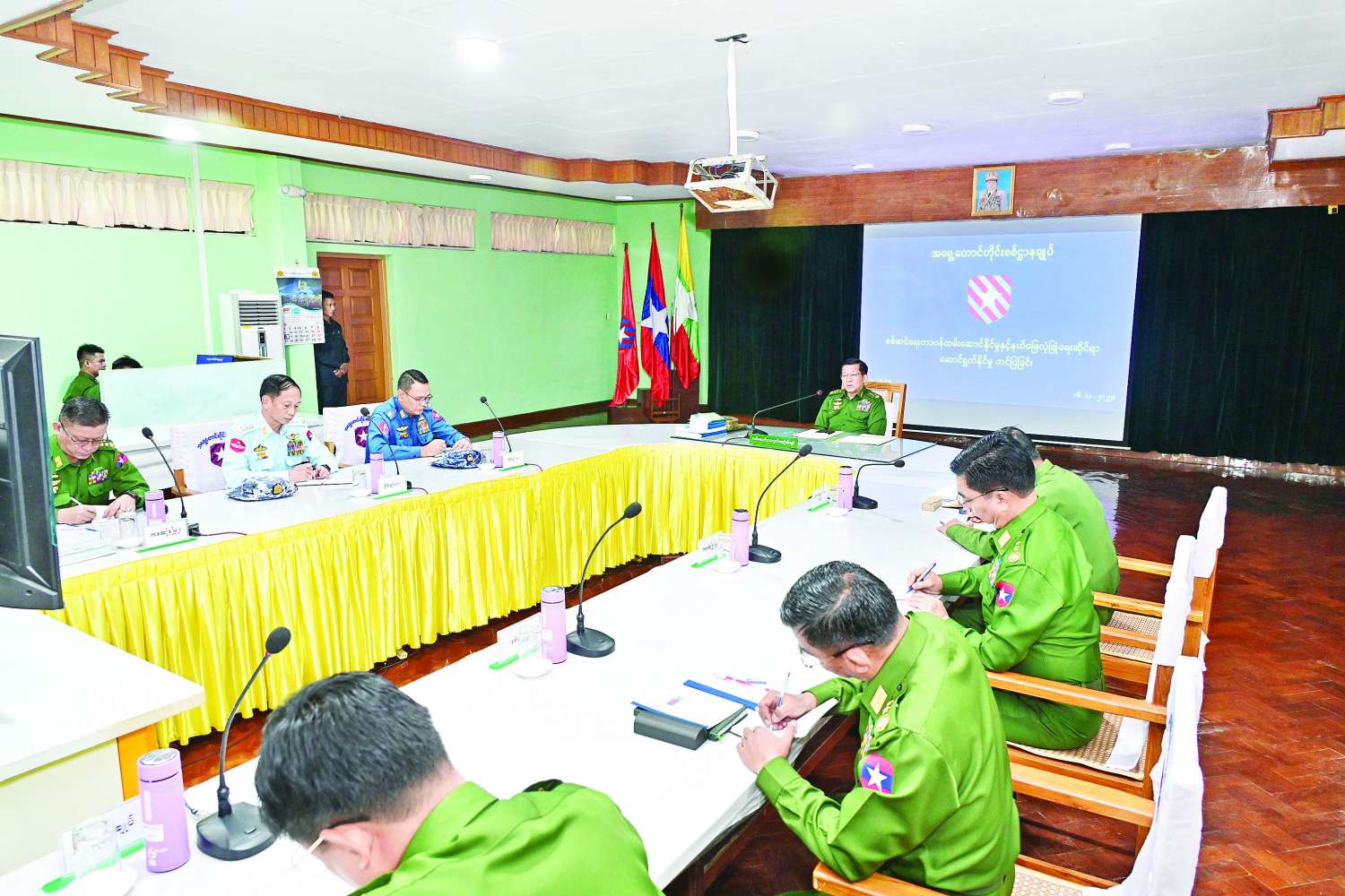နိုင်ငံတော်လုံခြုံရေးနှင့် အေးချမ်းသာယာရေးကော်မရှင်ဥက္ကဋ္ဌ တပ်မတော်ကာကွယ်ရေးဦးစီးချုပ် ဗိုလ်ချုပ်မှူးကြီး မင်းအောင်လှိုင်သည် ကာကွယ်ရေးဦးစီးချုပ်ရုံးမှ အဆင့်မြင့်တပ်မတော်အရာရှိကြီးများ လိုက်ပါ၍ ယနေ့နံနက်ပိုင်းတွင် အရှေ့တောင်တိုင်းစစ်ဌာနချုပ်၏ စစ်ဦးစီး၊ စစ်ရေးနှင့် စစ်ထောက်ဆိုင်ရာ ဆောင်ရွက်ထားရှိမှု အခြေအနေများအား စစ်ဆေးသည်။
