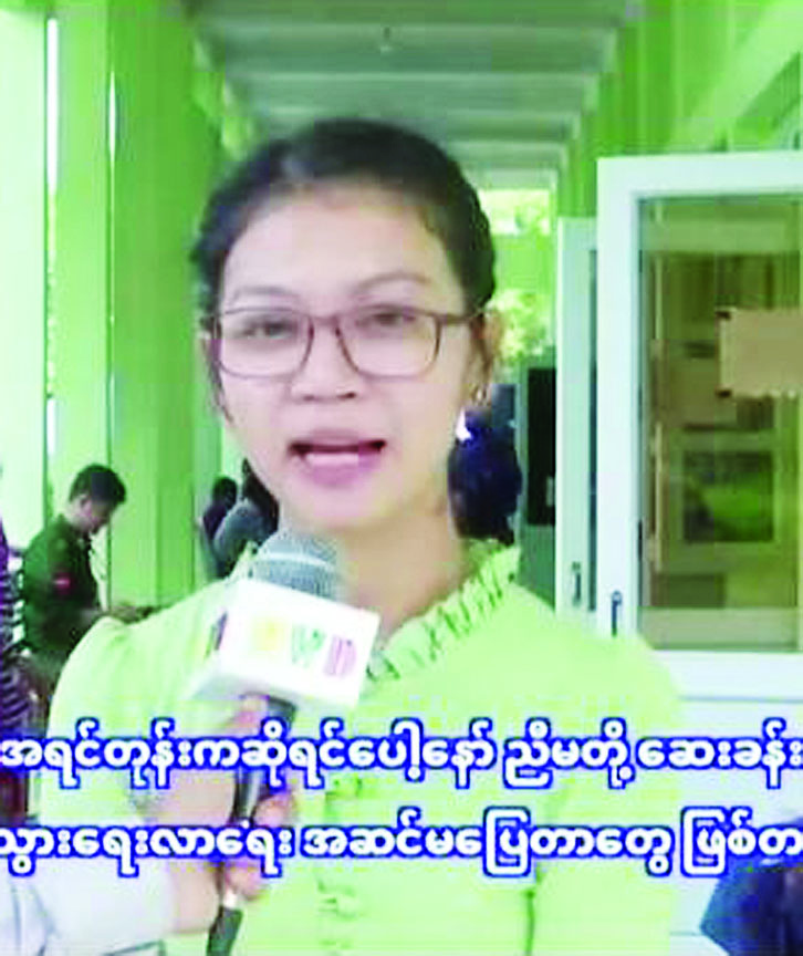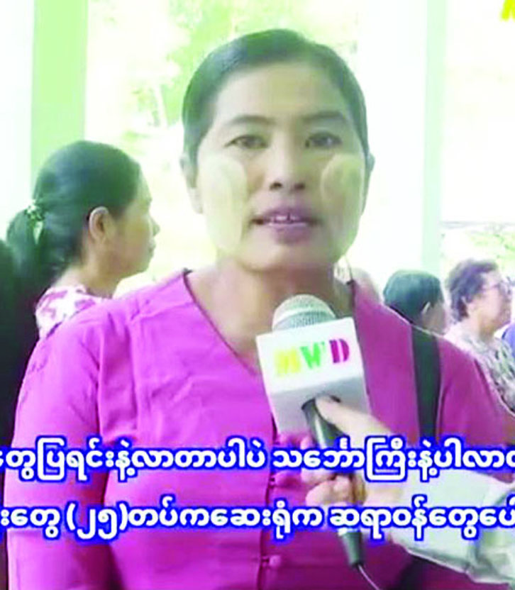 ၁။ ကျွန်မခါးနာနေလို့လာပြတာပါ။ ပထမတော့ နည်းနည်း နာတာပေါ့။ အလုပ်လုပ်နေတဲ့အခါကျတော့ ခါးကကြာလာရင် တအားနာလာတယ်။ အခုနယ်လှည့်ဆေးကု သံလွင်သင်္ဘောကြီး ရောက်နေတယ်ဆိုတာ သိရတယ်။ ဆေးဗိုလ်ကြီးတွေ၊ ပါရဂူကြီးတွေလည်း ပါတယ်ဆိုတော့ ခါးနာတာ လာပြတာပါ။ သင်္ဘောကြီးနဲ့ပါလာတဲ့ ပါရဂူကြီးတွေ၊ တပ်ဆေးရုံက ဆရာဝန်တွေပေါ့နော်။ ပြီးလို့ရှိရင် နိုင်ငံတော်အကြီးအကဲတွေ အခုလိုမျိုး စားစရာ သောက်စရာတွေ အပြည့်အစုံနဲ့ ထမင်းဘူးတို့ ရေတို့ကအစ ဘာမှကြည့်စရာမလိုအောင် လုပ်ပေးတဲ့အတွက် အားလုံးကိုလည်း ကျေးဇူးတင်ပါတယ်။ ကျွန်မတို့လိုမျိုးလာပြတဲ့ လူနာတွေအကုန်လုံးကို လိုလေသေးမရှိ အကုန်ပြီးပြည့်စုံအောင် လုပ်ပေးတဲ့အတွက် အားလုံးကျန်းမာချမ်းသာပါစေလို့ ဆုတောင်းမေတ္တာပို့သပါတယ်။