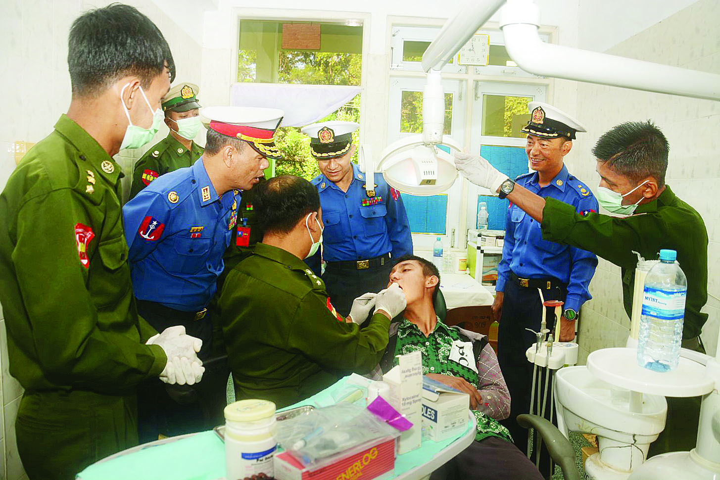 ရန်ကုန်တိုင်းဒေသကြီး ကိုကိုးကျွန်းမြို့နယ်နှင့် ဧရာဝတီတိုင်းဒေသကြီး ဟိုင်းကြီးကျွန်းမြို့နယ် အတွင်းရှိ ကျေးရွာများနှင့် ပတ်ဝန်းကျင်ကျေးရွာများမှ ဒေသခံပြည်သူများအား ကျန်းမာရေးစောင့်ရှောက်မှုလုပ်ငန်းများ ဆောင်ရွက်ပေးရန်အတွက် တပ်မတော်ပင်လယ်သွားဆေးရုံရေယာဉ် (သံလွင်) ဖြင့် ရောက်ရှိနေသည့် တပ်မတော်မှ ပါရဂူများ၊ ဆေးမှူးများနှင့် သူနာပြုများ ပါဝင်သော တပ်မတော်နယ်လှည့်အထူးကုဆေးအဖွဲ့သည် ယနေ့နံနက်ပိုင်းတွင် ဧရာဝတီတိုင်းဒေသကြီး ငပုတောမြို့နယ် ဟိုင်းကြီးကျွန်းမြို့နှင့် အနီးပတ်ဝန်းကျင်ကျေးရွာများရှိ ဒေသခံပြည်သူ ၃၆၄ ဦးအား နယ်မြေခံတပ်မတော်ဆေးရုံ၌ ကျန်းမာရေးစောင့်ရှောက်မှုလုပ်ငန်းများ ဆောင်ရွက်ပေးသည်။