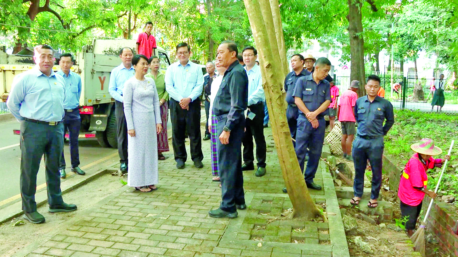 ပညာရေးဝန်ကြီးဌာန ပြည်ထောင်စုဝန်ကြီး ဒေါက်တာချောချောစိန်သည် ဒုတိယဝန်ကြီး ဦးနေမျိုးလှိုင်၊ တာဝန်ရှိသူများနှင့်အတူ ယနေ့နံနက်ပိုင်းတွင် ရန်ကုန်မြို့တော် စည်ပင်သာယာရေး ကော်မတီဝန်ထမ်းများ၊ ရန်ကုန်တက္ကသိုလ် ဝန်ထမ်းများက ရန်ကုန်တက္ကသိုလ်အတွင်း သန့်ရှင်းသာယာ လှပရေးဆောင်ရွက်နေမှုကို ကြည့်ရှုအားပေးသည်။