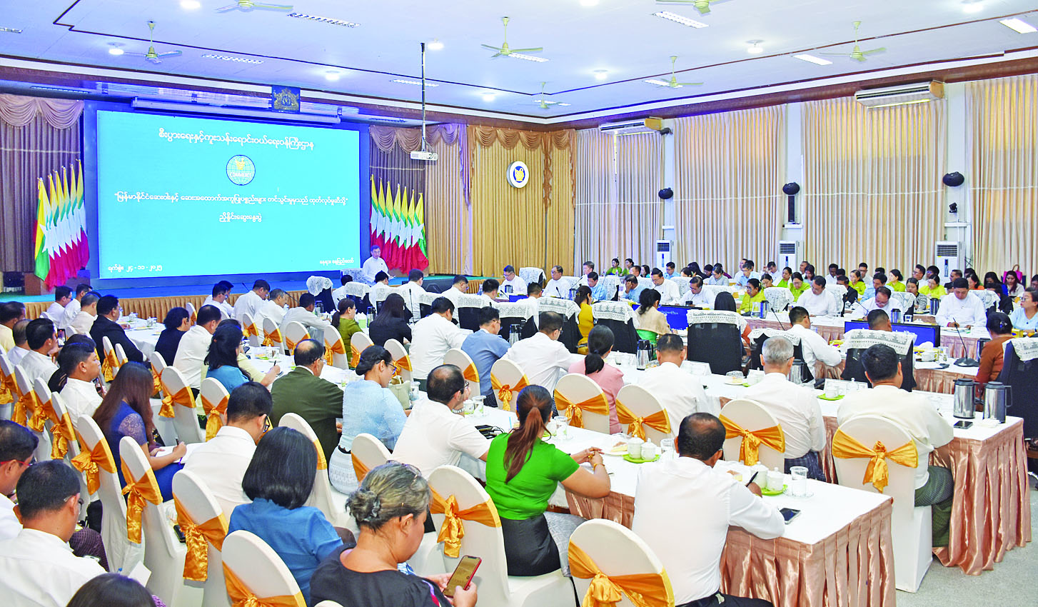 မြန်မာနိုင်ငံဆေးဝါးနှင့် ဆေးအထောက်အကူပြုပစ္စည်းများ တင်သွင်းမှုမှသည် ထုတ်လုပ်မှုဆီသို့ ညှိနှိုင်းအစည်းအဝေးပွဲကို ယနေ့မွန်းလွဲ ၁ နာရီတွင် နေပြည်တော်ရှိ စီးပွားရေးနှင့်ကူးသန်းရောင်းဝယ်ရေးဝန်ကြီးဌာန အစည်းအဝေးခန်းမ၌ကျင်းပရာ စီးပွားရေးနှင့်ကူးသန်းရောင်းဝယ်ရေးဝန်ကြီးဌာန ပြည်ထောင်စုဝန်ကြီး ဦးချစ်ဆွေ၊ ဒုတိယဝန်ကြီးများ၊ အမြဲတမ်းအတွင်းဝန်များ၊ ဌာနဆိုင်ရာတာဝန်ရှိသူများ၊ မြန်မာနိုင်ငံဆေးနှင့်ဆေးပစ္စည်းလုပ်ငန်းရှင်များအသင်းနှင့် မြန်မာနိုင်ငံဆေးနှင့်ဆေးပစ္စည်း ထုတ်လုပ်သူများအသင်းတို့မှ တာဝန်ရှိသူများ တက်ရောက်ကြသည်။