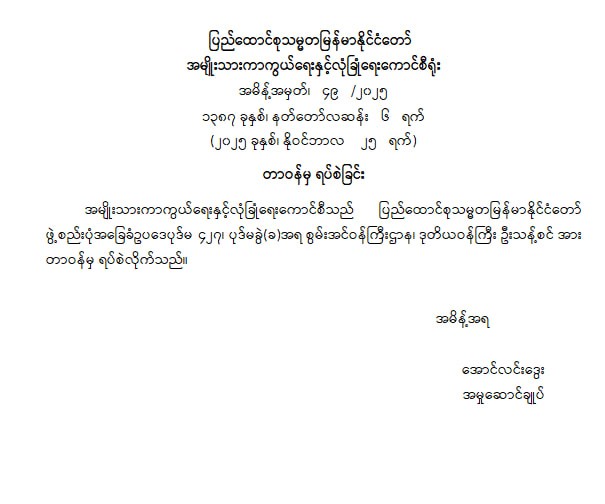 တပ်မတော်သား အမျိုးသားလွှတ်တော်ကိုယ်စားလှယ် အမည်စာရင်းကြေညာခြင်း