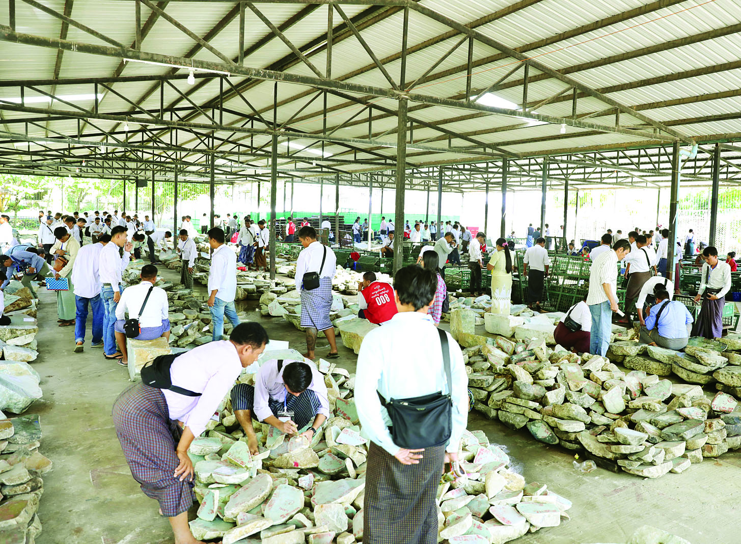 ပြပွဲဒသမနေ့တွင် ရောင်းချမည့် အုပ်စု (စီ) မှ ကျောက်စိမ်းအတွဲ အမှတ် (၄၄၀၁) မှ (၅၀၈၅) အထိကို ပြည်တွင်း၊ ပြည်ပရတနာကုန်သည်များက ကြည့်ရှုစစ်ဆေးကြပြီး ဈေးနှုန်းပေးသွင်းလွှာများကို သက်ဆိုင်ရာ တင်ဒါပုံးများအတွင်းသို့ ထည့်သွင်းကြသည်။