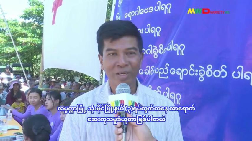 ၂။ လပွတ္တာမြို့ သုံးမိုင်မြို့နယ်(၃)ရပ်ကွက်ကနေ လာရောက်ဆေးကုသမှုခံယူတာဖြစ်ပါတယ်။ ညာဘက်မျက်စိကရေတိမ်ဖြစ်နေတယ်လို့ သိရပါတယ်။ အဲဒါကြောင့်မို့ ကျွန်တော် တပ်မတော်နယ်လှည့်ဆေးကုသမှုအဖွဲ့လာလို့ လာပြတာပါခင်ဗျာ။ ဝမ်းလည်းဝမ်းသာပါတယ်။ ခုလိုမျိုးလာပြီးတော့ ဂရုတစိုက်နဲ့လာရောက်ကုသပေးတဲ့အတွက် ကျွန်တော်တို့ လပွတ္တာမြို့သူမြို့သားများကိုယ်စား ကျွန်တော်က ကျေးဇူးလည်းအထူးတင်ပါတယ်လို့ ပြောချင်ပါတယ်။