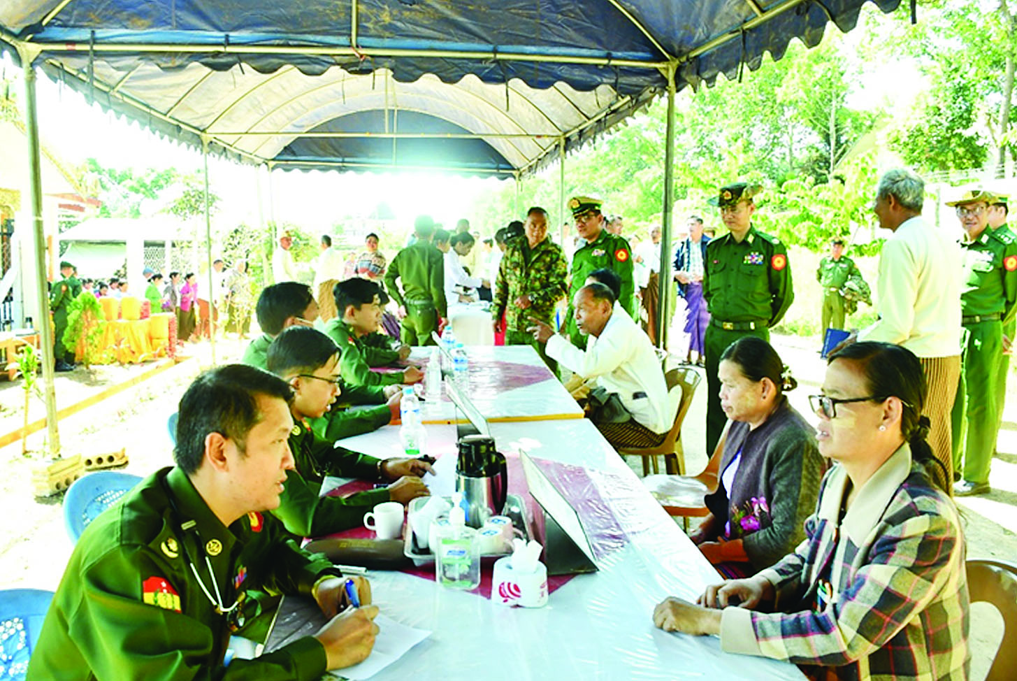 ဦးစွာ တိုင်းမှူးက အမှာစကားပြောကြားပြီး စစ်မှုထမ်းဟောင်းအဖွဲ့ဝင်များ၏ တင်ပြချက်များအပေါ် လိုအပ်သည်များ ပေါင်းစပ်ညှိနှိုင်းဆောင်ရွက်ပေးသည်။ ထို့နောက် တိုင်းမှူးက စစ်မှုထမ်းဟောင်း မိသားစုဝင်များအတွက် ဆန်၊ ဆီ၊ ကြက်ဥနှင့် စားသောက်ဖွယ်ရာများပေးအပ်ရာ တာဝန်ရှိသူတစ်ဦးက လက်ခံရယူသည်။ ယင်းနောက် တိုင်းမှူးနှင့် တာဝန်ရှိသူများက စစ်မှုထမ်းဟောင်းအိမ်ရာ၌ တိုင်းစစ်ဌာနချုပ် နယ်လှည့်ဆေးကုသရေးအဖွဲ့က စစ်မှုထမ်းဟောင်းအဖွဲ့ဝင်မိသားစုများအား ကျန်းမာရေးစောင့်ရှောက်ပေးနေမှုများကို သွားရောက်ကြည့်ရှုအားပေးခဲ့ကြောင်း သိရသည်။