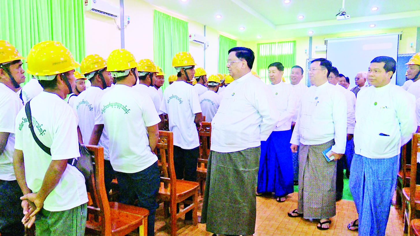 ယင်းနောက် ပြည်ထောင်စုဝန်ကြီးက အခြေခံစက်ပြင်ဘာသာရပ်၊ အခြေခံလျှပ်စစ်ဘာသာရပ်၊ အခြေခံဂဟေဆက်ဘာသာရပ်တို့ကို တက်ရောက်သင်ကြားမည့် သင်တန်းသား သင်တန်းသူများကို ရင်းရင်းနှီးနှီး တွေ့ဆုံအားပေးစကားပြောကြားပြီး သင်ထောက်ကူပစ္စည်းများကို ကြည့်ရှုစစ်ဆေးသည်။