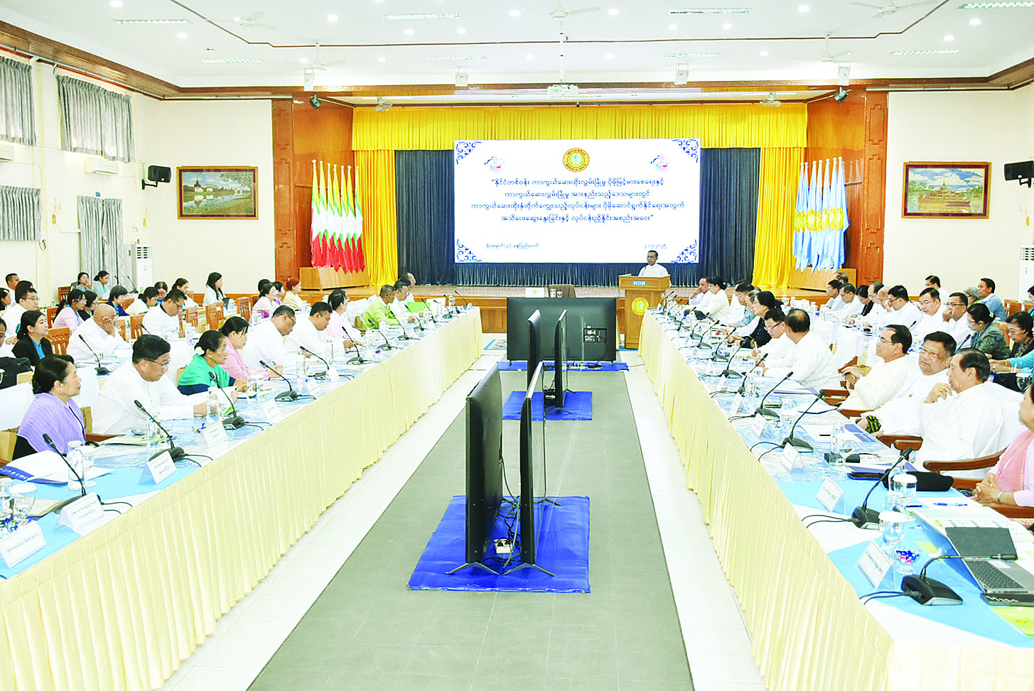 နိုင်ငံတစ်ဝန်း ကာကွယ်ဆေးထိုး လွှမ်းခြုံမှုပိုမိုမြင့်မားစေရေးနှင့် ကာကွယ်ဆေးလွှမ်းခြုံမှု အားနည်းသည့်ဒေသများတွင် ကာကွယ်ဆေးထိုးနှံတိုက်ကျွေးသည့် လုပ်ငန်းများ ပိုမိုဆောင်ရွက်နိုင်ရေး ညှိနှိုင်းအစည်းအဝေးကို ယနေ့နံနက်ပိုင်းတွင် နေပြည်တော်ရှိ ကျန်းမာရေးဝန်ကြီးဌာန အစည်းအဝေးခန်းမ၌ ကျင်းပသည်။