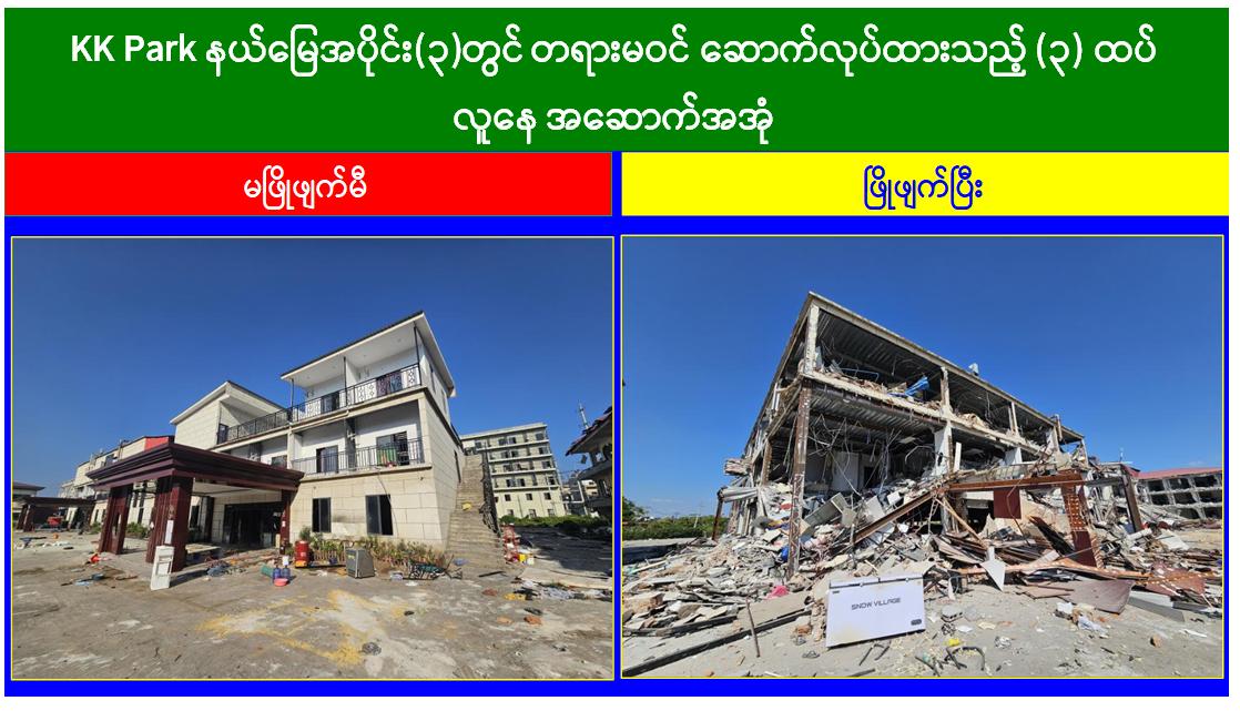 မြန်မာနိုင်ငံတော်အစိုးရအနေဖြင့် အွန်လိုင်းလိမ်လည်မှုများနှင့် အွန်လိုင်းလောင်းကစားမှုများ အများဆုံးအခြေချလုပ်ကိုင်လျက်ရှိကြသည့် ရွှေကုက္ကိုလ်နယ်မြေနှင့် မြဝတီ-မဲထော်သလေး (KK Park) နယ်မြေများ၌ လုံခြုံရေးတပ်ဖွဲ့ဝင်များ၊ အုပ်ချုပ်ရေးအဖွဲ့အစည်းများနှင့် ဒေသတွင်းတာဝန်ရှိသူများအပါအဝင် အဖွဲ့စုံပါဝင်သည့် ပူးပေါင်းအဖွဲ့ဖြင့် တရားမဝင်အဆောက်အအုံများအတွင်း ဝင်ရောက်ရှင်းလင်းခြင်း၊ အွန်လိုင်းလိမ်လည် လောင်းကစားမှုလုပ်ငန်းစဉ်များတွင် အသုံးပြုခဲ့သည့် သိမ်းဆည်းရမိပစ္စည်းများနှင့် တရားမဝင် အဆောက်အအုံများအား စနစ်တကျဖြိုချဖျက်ဆီးခြင်းနှင့် ချိပ်ပိတ်သိမ်းဆည်းခြင်းများ ဆောင်ရွက်လျက်ရှိရာ ယနေ့အထိ KK Park နယ်မြေအတွင်းရှိ တရားမဝင်အဆောက်အအုံ ၂၉၇ လုံးကို စနစ်တကျဖြိုချဖျက်ဆီးခဲ့ပြီးဖြစ်ကြောင်း သိရှိရသည်။
