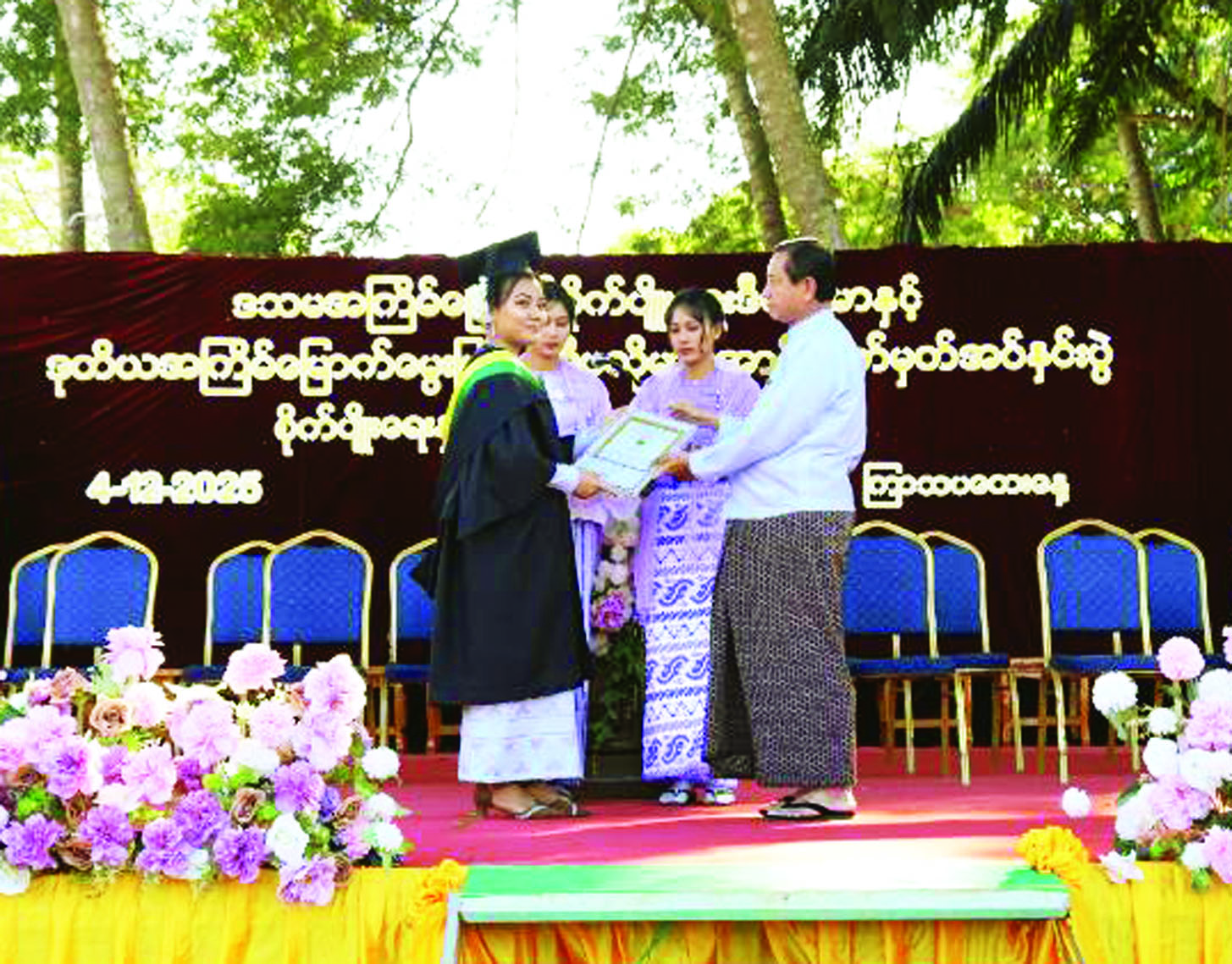 အစီအစဉ် ဒုတိယပိုင်းတွင် စိုက်ပျိုးရေးနှင့်မွေးမြူရေးသိပ္ပံ (ပျဉ်းမနား) ကျောင်းအုပ်ကြီးက စိုက်ပျိုးရေး ဒီပလိုမာဘွဲ့ ၁၆၈ ဦး နှင့် မွေးမြူရေးဒီပလိုမာဘွဲ့ ၃၂ ဦး ကိုဆိုင်ရာ အောင်လက်မှတ်များ ပေးအပ်သည်။