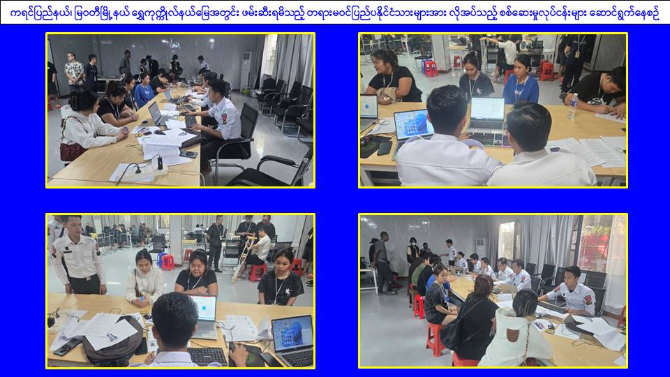 အွန်လိုင်းလောင်းကစားမှုများ၊ အွန်လိုင်းလိမ်လည်မှုများအပါအဝင် ဒုစရိုက်မှုများ ကျူးလွန်ခဲ့ကြသူများအား အင်တိုက်အားတိုက်ဖြင့် ကျယ်ကျယ်ပြန့်ပြန့်ရှာဖွေဖမ်းဆီးအရေးယူခြင်းများ ဆောင်ရွက်လျက်ရှိရာ ယနေ့တွင် မြဝတီမြို့ရှိ လုံခြုံရေးပူးပေါင်းအဖွဲ့များက သတင်းအရမြဝတီမြို့ဝန်းကျင်တွင် ရှောင်တခင်စစ်ဆေးခြင်းများ ဆောင်ရွက်ခဲ့ရာ အမှတ် (၂) ရပ်ကွက်တွင် တရားမဝင်အွန်လိုင်းလောင်းကစားမှုများ၊ အွန်လိုင်းလိမ်လည်မှုများ ကျူးလွန်လျက်ရှိကြသည့် အိန္ဒိယနိုင်ငံသားအမျိုးသား ၅၈ ဦးနှင့် အမျိုးသမီး ၁၇ ဦး၊ စုစုပေါင်း ၇၅ ဦးတို့အား ဖော်ထုတ်ဖမ်းဆီးရမိခဲ့ကာ အဆိုပါဖမ်းဆီးရမိသူများအား လိုအပ်သောကိုယ်ရေးအချက်အလက်များ စစ်ဆေးရန်အတွက် မြဝတီမြို့၊ အမှတ် (၄) ရပ်ကွက်၊ လှိုင်ထိပ်ခေါင်တင်လမ်းရှိ မြို့မအားကစားကွင်း၌ ကောင်းမွန်စွာထိန်းသိမ်းစောင့်ရှောက်ထားရှိလျက်ရှိသည်။ ထို့ပြင် မြဝတီမြို့၊ အမှတ် (၃) ရပ်ကွက်အတွင်းရှိ အွန်လိုင်းလိမ်လည်မှုနှင့် လောင်းကစားလုပ်ငန်းများ လုပ်ကိုင်ရာတွင် အသုံးပြုနေထိုင်လုပ်ကိုင်ခဲ့ကြသည့် ၃ ထပ် အဆောက်အအုံ ၅ လုံး၊ ၁ ထပ် အဆောက်အအုံ ၃ လုံး၊ စုစုပေါင်း ၈ လုံးတို့အား စစ်ဆေးတွေ့ရှိခဲ့ရပြီး ၎င်းတို့အား ပြန်လည်အသုံးချမှုမရှိစေရေးအတွက် ဖြိုချဖျက်ဆီးခြင်းများကို ဆောင်ရွက်ခဲ့ရာ ယနေ့တွင်လည်း ၃ ထပ်အဆောက်အအုံ ၁ လုံးကို ထပ်မံဖြိုချဖျက်ဆီးနိုင်ခဲ့သဖြင့် စုစုပေါင်း ၂ လုံး ဖြိုချဖျက်ဆီးပြီးဖြစ်ကြောင်း သိရှိရသည်။