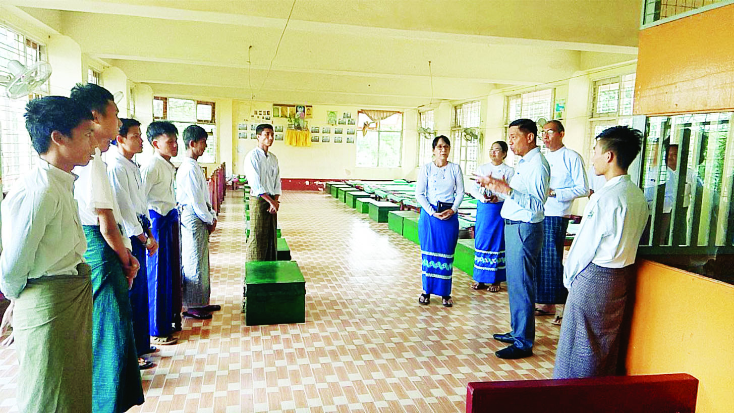 ထိုသို့ ကြည့်ရှုစစ်ဆေးစဉ် လူငယ်သင်တန်း ကျောင်းကျောင်းအုပ်ကြီးက ကလေးများ အတန်း ပညာသင်ကြားနေမှုနှင့် ကျောင်း၏ လုပ်ငန်းဆောင်ရွက်ချက်များကို ရှင်းလင်းတင်ပြသည်။