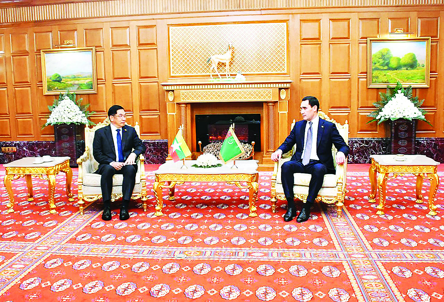 ညနေပိုင်းတွင် နိုင်ငံတော်ဝန်ကြီးချုပ် ဦးညိုစောသည် တာ့ခ်မင်နစ္စတန်နိုင်ငံသမ္မတ H.E. Mr. Serdar Berdimuhamedov နှင့်တွေ့ဆုံ၍ နှစ်နိုင်ငံအကြား ချစ်ကြည်ရင်းနှီးမှုနှင့် သံတမန်ဆက်ဆံရေး ပိုမိုတိုးမြှင့်ဆောင်ရွက်ရေးဆိုင်ရာကိစ္စရပ်များ၊ ကဏ္ဍပေါင်းစုံတို့၌ ပူးပေါင်းဆောင်ရွက်မှုမြှင့်တင်ရေးကိစ္စရပ်များ၊ နိုင်ငံတကာမျက်နှာစာတွင် အပြုသဘောဆောင်သော ပူးပေါင်းဆောင်ရွက်မှုများ ဆက်လက်အရှိန်မြှင့်တင်ဆောင်ရွက်သွားမည့် အခြေအနေများနှင့်စပ်လျဉ်း၍ ရင်းနှီးပွင့်လင်းစွာ အမြင်ချင်းဖလှယ်ဆွေးနွေးခဲ့ကြကြောင်း သတင်း ရရှိသည်။