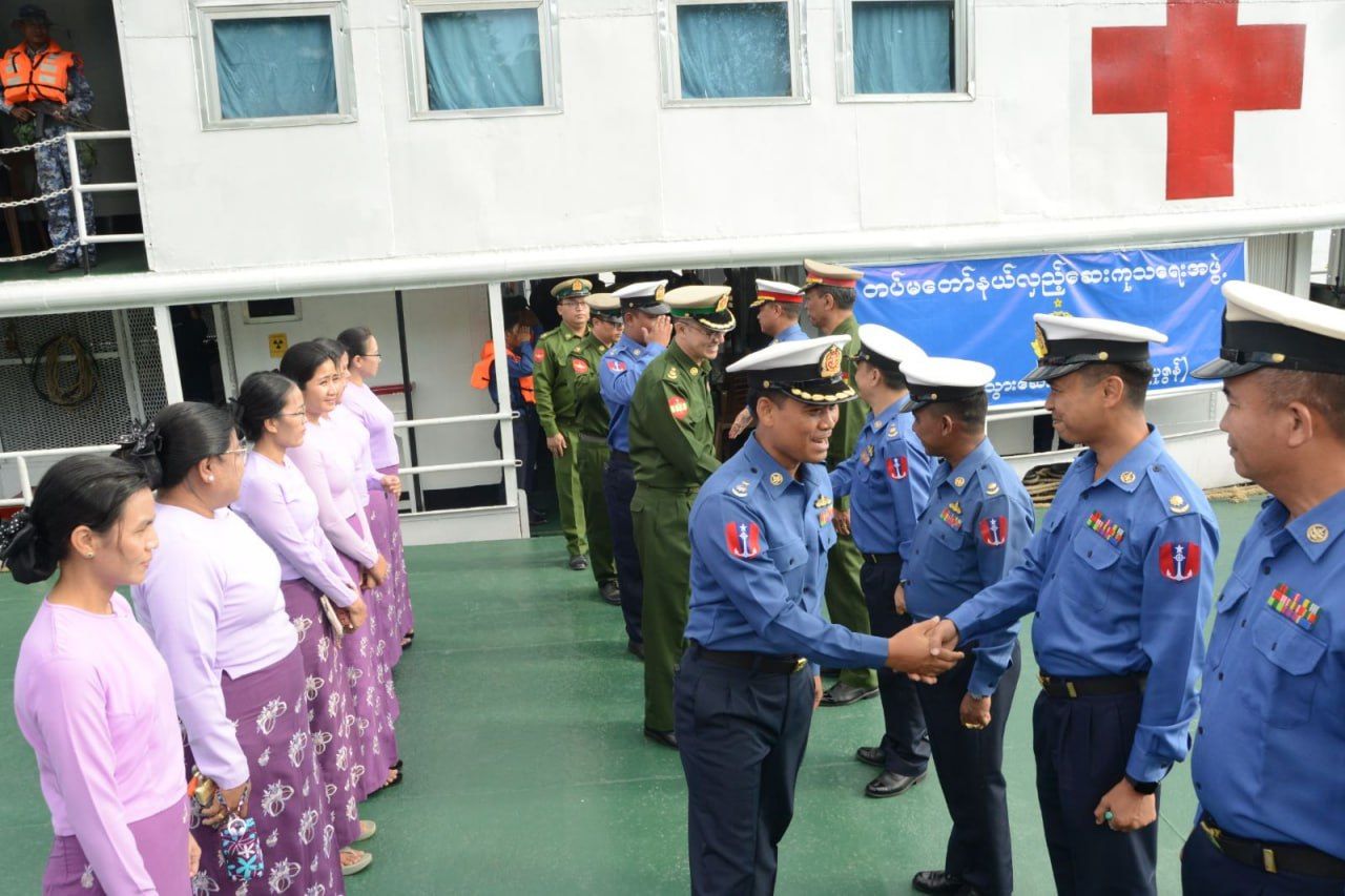 ဧရာဝတီတိုင်းဒေသကြီး၊ ဧရာဝတီမြစ်ကြောင်းတစ်လျှောက်ရှိ မြစ်ဝကျွန်းပေါ်နေကျေးရွာများမှ ဒေသခံပြည်သူများအား တပ်မတော်မြစ်တွင်းသွား ဆေးရုံရေယာဉ်(ရွှေပုဇွန်)နှင့် မြစ်ရေယာဉ်(စကု)တို့ဖြင့် သွားရောက်၍ ကျန်းမာရေးစောင့်ရှောက်မှုလုပ်ငန်းများ ဆောင်ရွက်ပေးခဲ့သည့် တပ်မတော်မှ ပါရဂူများ၊ ဆေးမှူးများနှင့် သူနာပြုများပါဝင်သော တပ်မတော်နယ်လှည့် အထူးကုဆေးအဖွဲ့သည် ယနေ့နံနက်ပိုင်းတွင် ရန်ကုန်မြို့သို့ ပြန်လည်ရောက်ရှိကြပြီး ဧရာဝတီမြစ်ကြောင်းတစ်လျှောက်ရှိ မြို့နယ်ပေါင်း(၈)မြို့နယ်မှ ဒေသခံပြည်သူ ၁၂၅၇၈ ဦး အား ဆေးဝါးကုသခြင်းများ ဆောင်ရွက်ပေးနိုင်ခဲ့ကြောင်း သိရှိရသည်။
