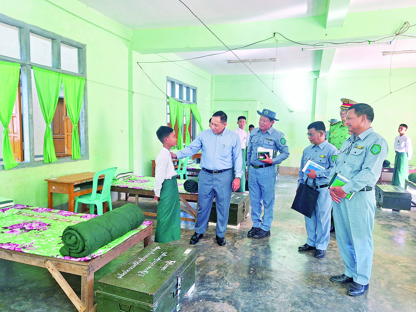 ယင်းနောက် ကျောင်းရှိ စာသင်ဆောင်၊ အိပ်ဆောင်၊ စားရိပ်သာ၊ စာကြည့်တိုက်၊ ကျောင်းသန့်ရှင်းသာယာလှပရေးနှင့် ရာသီသီးနှံစိုက်ပျိုးထားရှိမှုတို့ကို ကြည့်ရှုစစ်ဆေးသည်။