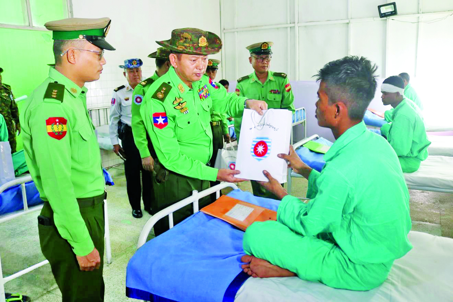 ဦးစွာ ကာကွယ်ရေးဦးစီးချုပ်ရုံး (ကြည်း) မှ ဒုတိယဗိုလ်ချုပ်ကြီး နိုင်နိုင်ဦး၊ တိုင်းမှူးနှင့် တာဝန်ရှိသူများက ဆေးရုံတက်လူနာတစ်ဦးချင်း၏ ရောဂါဖြစ်ပွားမှု၊ ဆေးဝါးကုသပေးထားမှုနှင့် ကျန်းမာရေးတိုးတက်ကောင်းမွန်မှုအခြေအနေများကို ရင်းရင်းနှီးနှီး မေးမြန်းအားပေးစကားပြောကြားပြီး အာဟာရဖြည့်စားသောက်ဖွယ်ရာများနှင့် ချီးမြှင့်ငွေများ ပေးအပ်ကြသည်။ ထို့နောက် ကာကွယ်ရေးဦးစီးချုပ်ရုံး (ကြည်း) မှ ဒုတိယဗိုလ်ချုပ်ကြီး နိုင်နိုင်ဦး၊ တိုင်းမှူးနှင့် တာဝန်ရှိသူများသည် ဆေးရုံများအတွင်း လှည့်လည်ကြည့်ရှု၍ လိုအပ်သည်များ ညှိနှိုင်းဆောင်ရွက်ပေးခဲ့ကြောင်း သိရသည်။