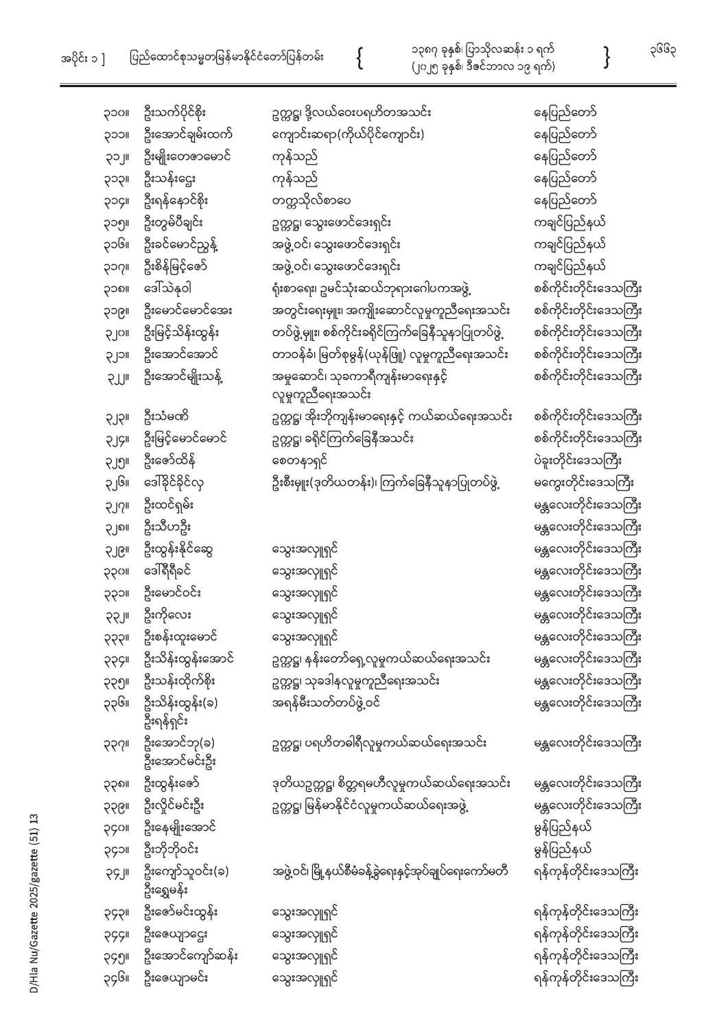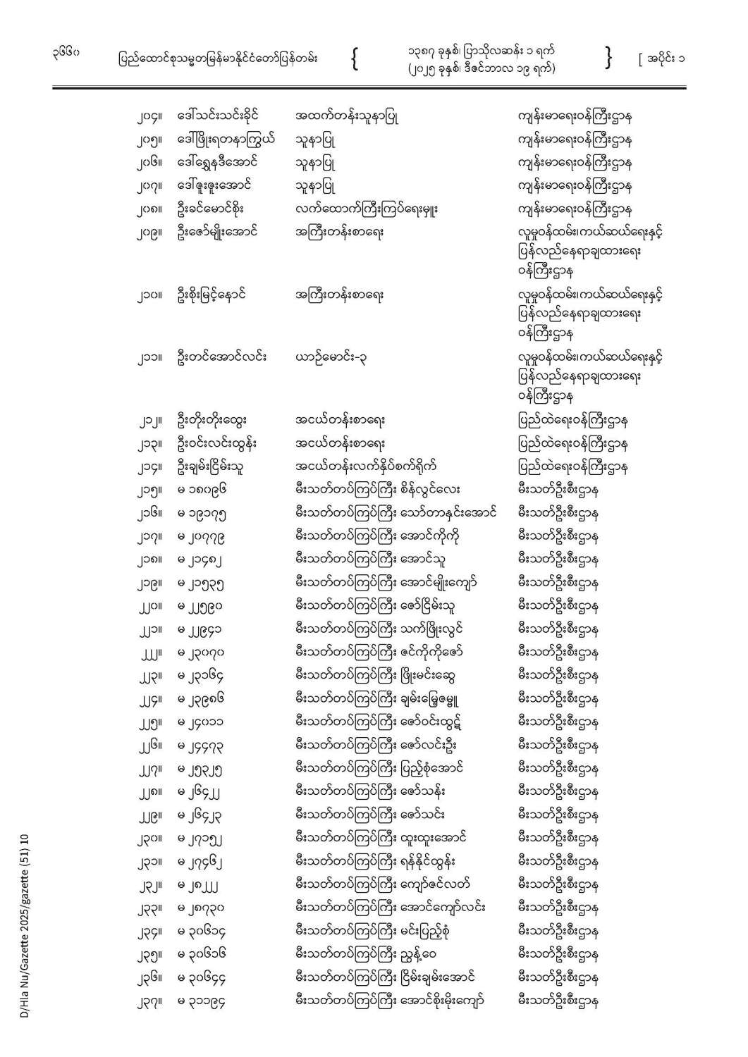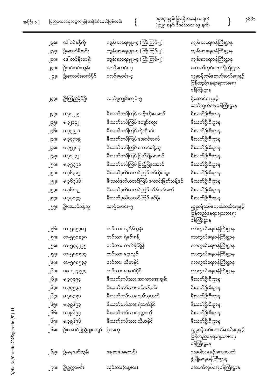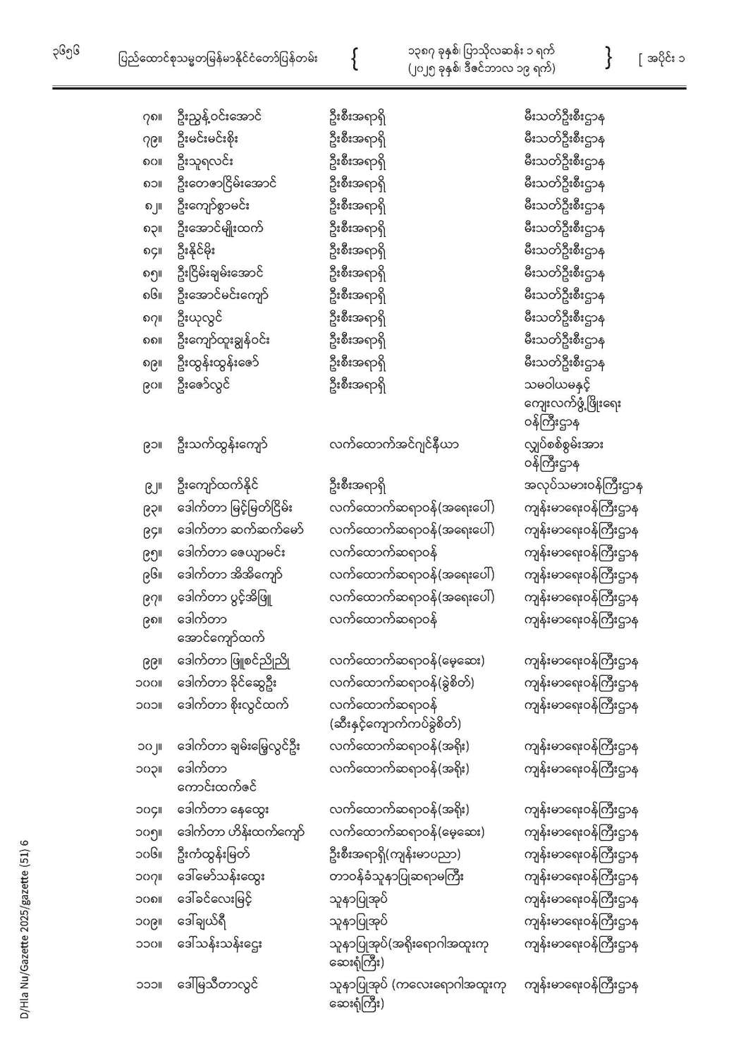 ပြည်ထောင်စုသမ္မတမြန်မာနိုင်ငံတော် ပြန်တမ်း အတွဲ (၇၈) အမှတ် (၅၁) အပိုင်း (၁)