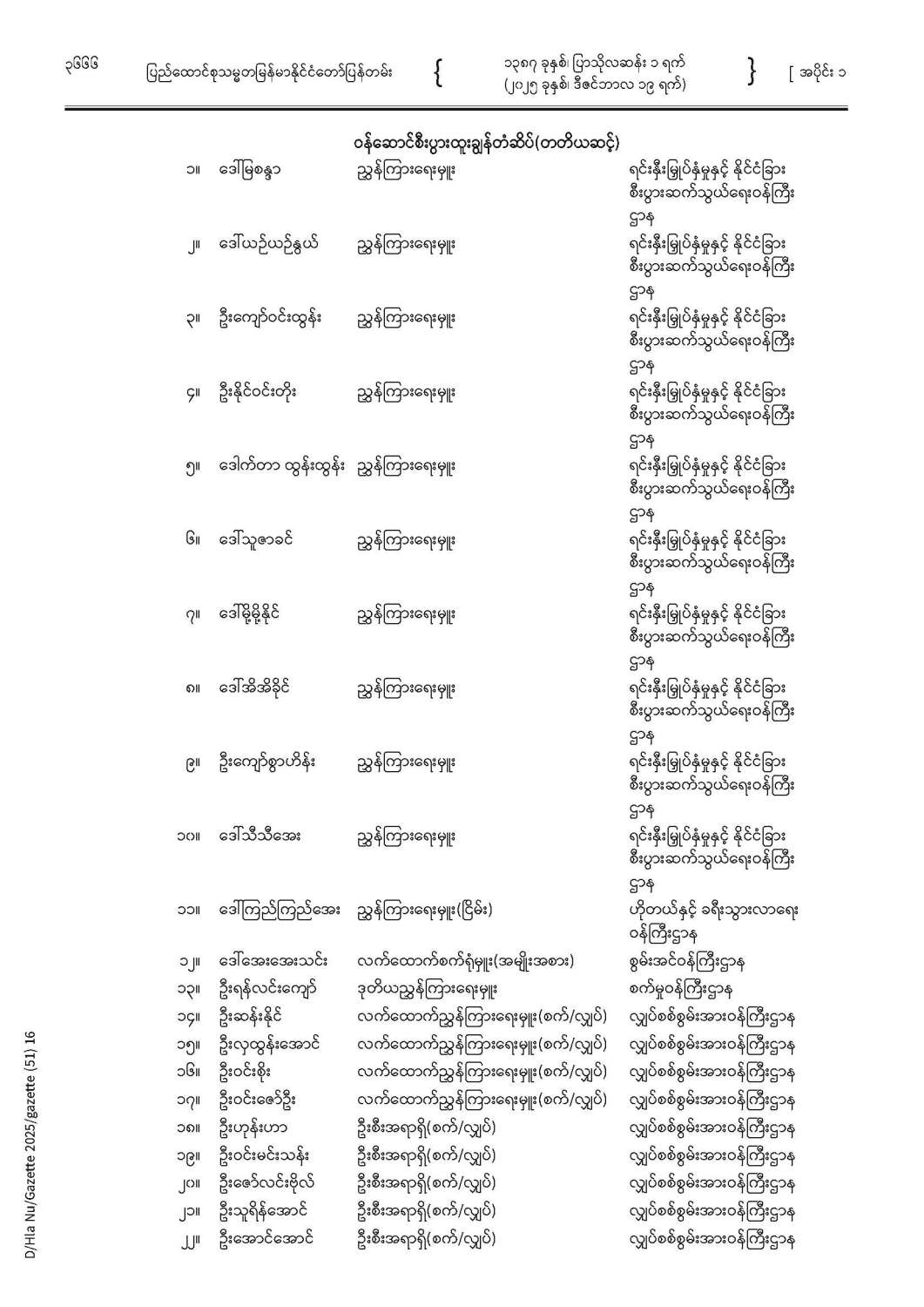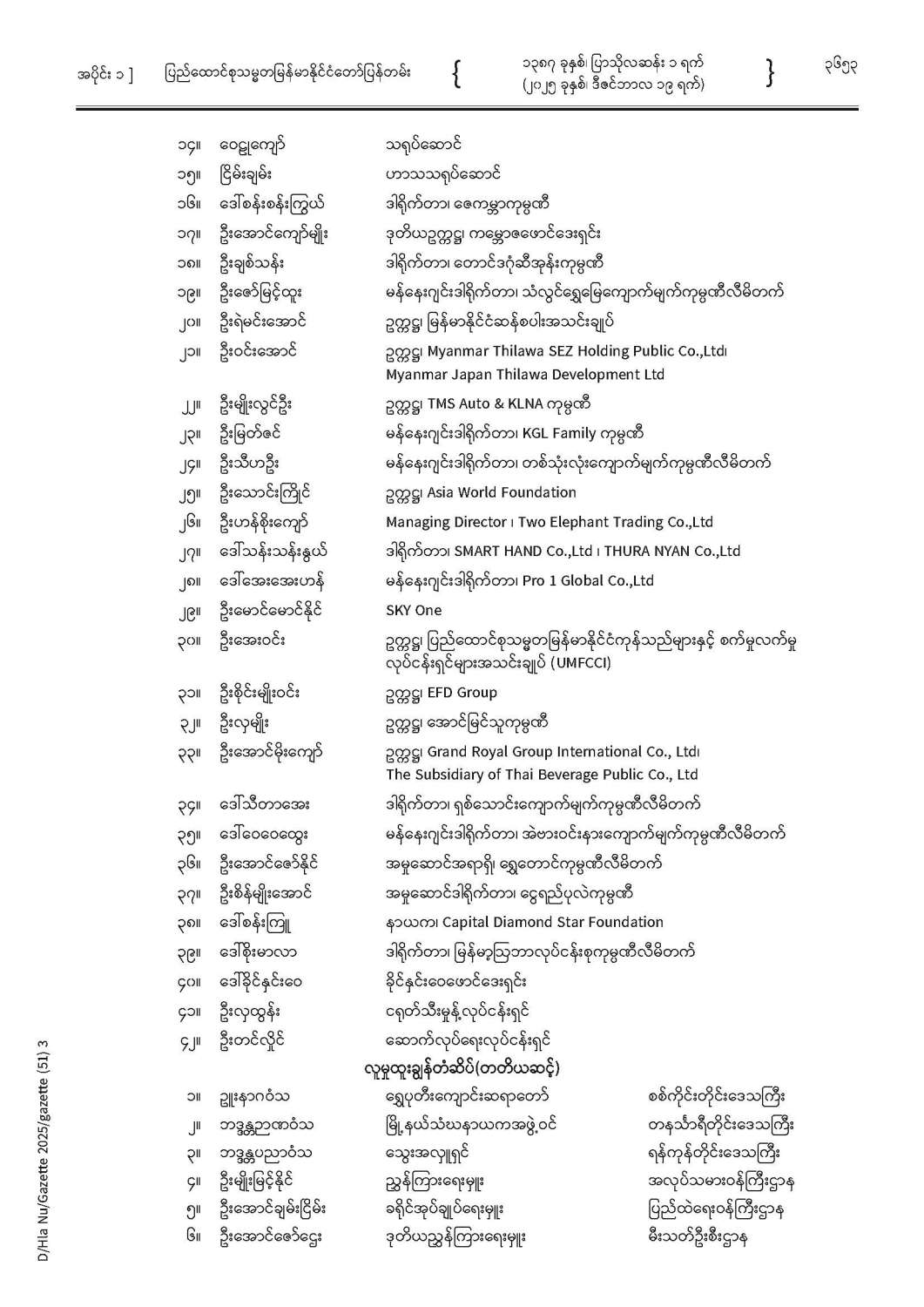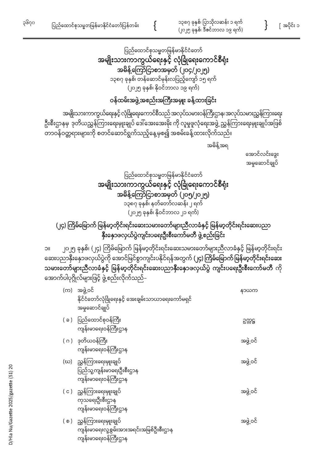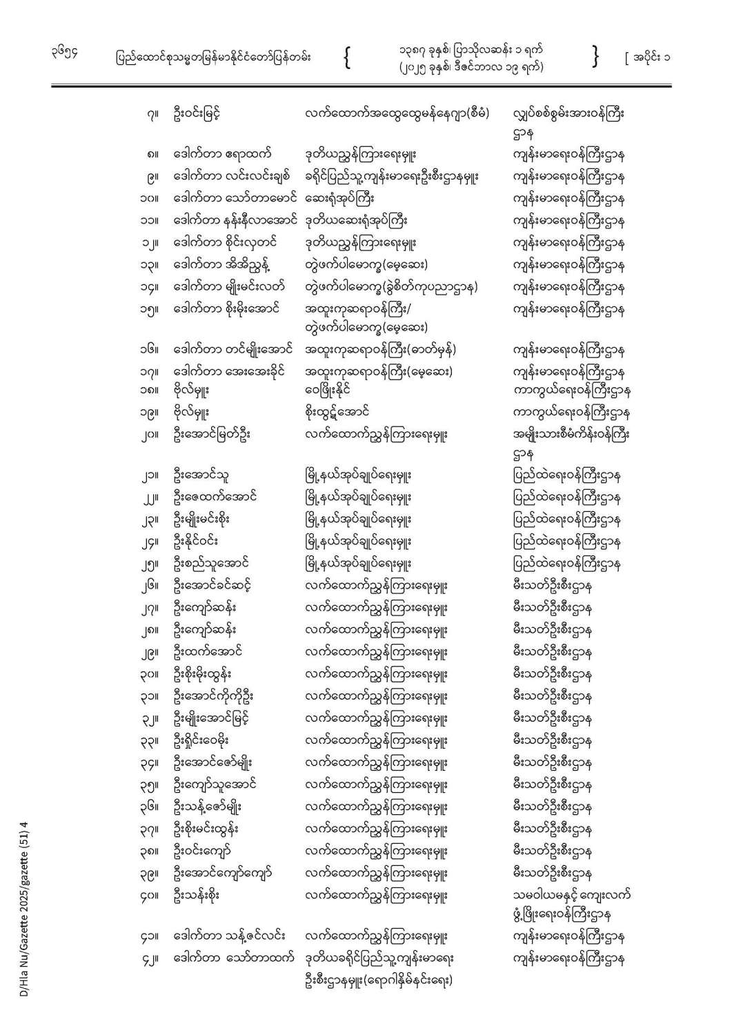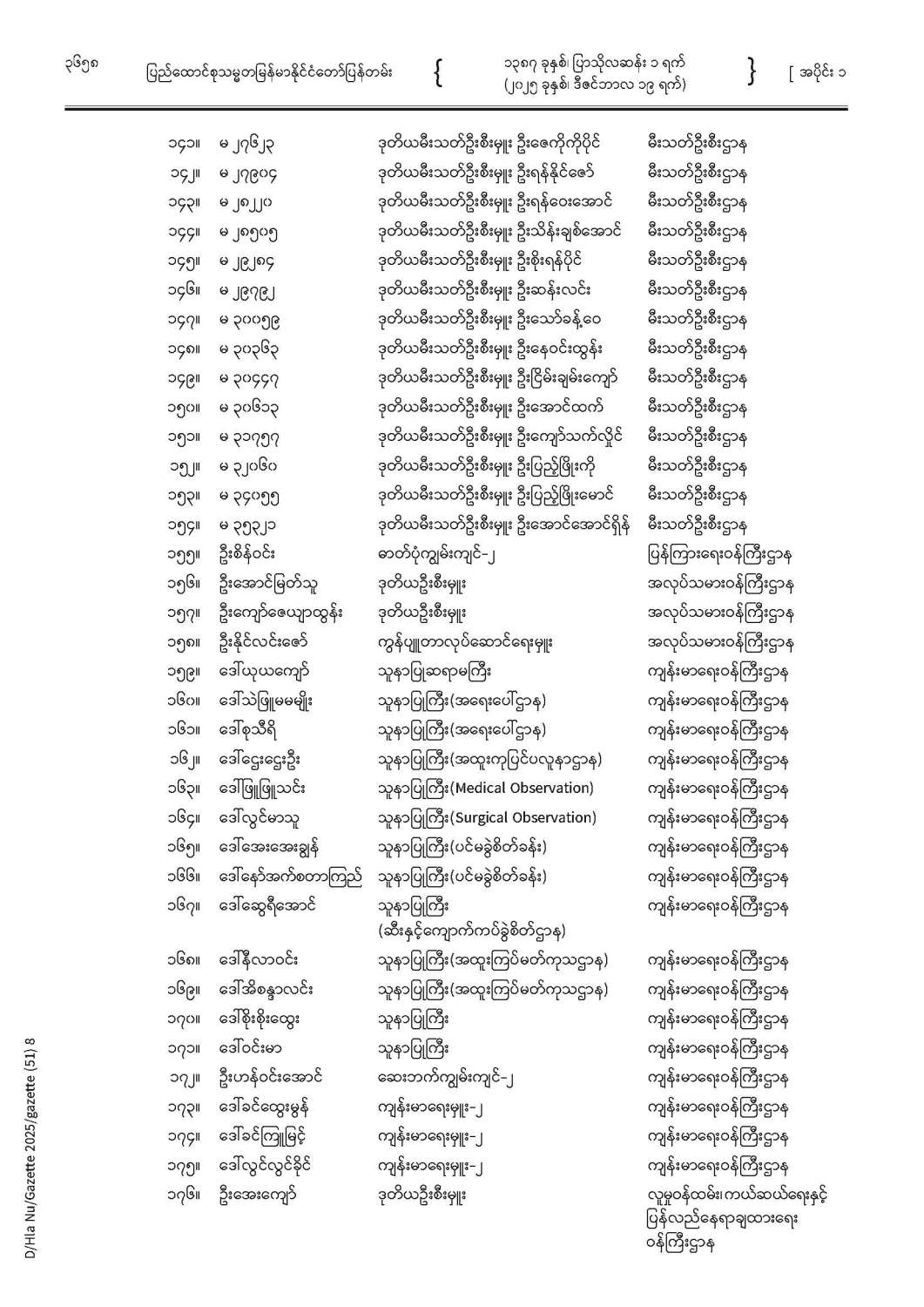 ပြည်ထောင်စုသမ္မတမြန်မာနိုင်ငံတော် ပြန်တမ်း အတွဲ (၇၈) အမှတ် (၅၁) အပိုင်း (၁)