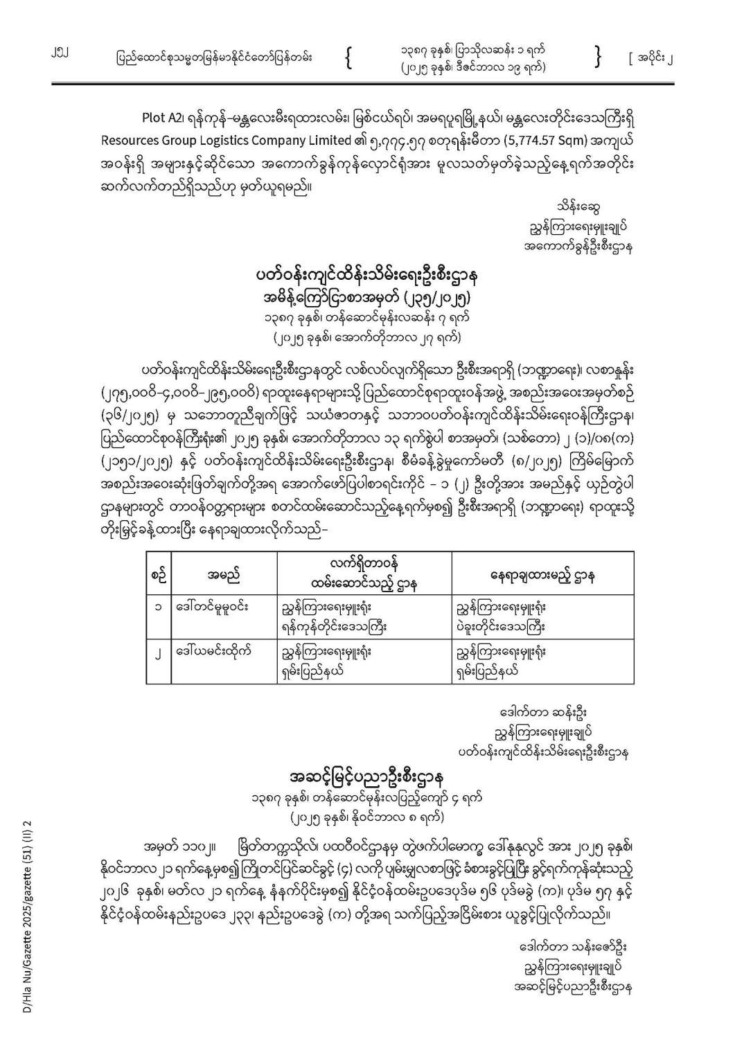 ပြည်ထောင်စုသမ္မတမြန်မာနိုင်ငံတော် ပြန်တမ်း အတွဲ (၇၈) အမှတ် (၅၁) အပိုင်း (၂)