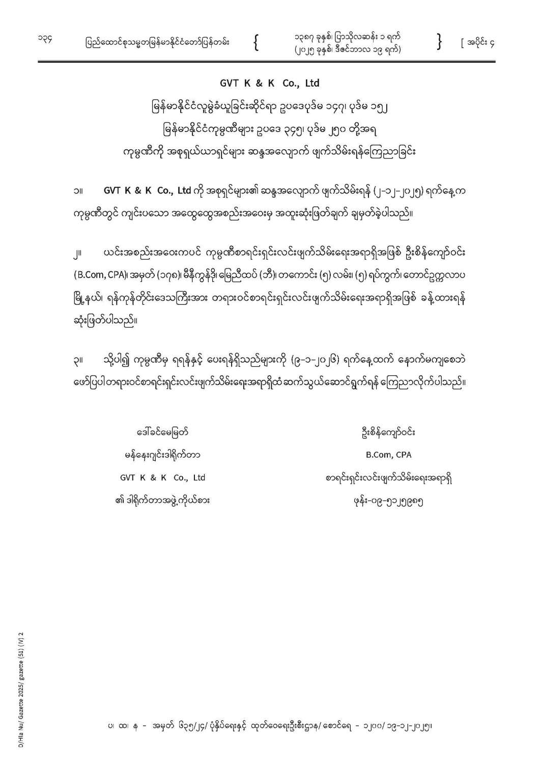ပြည်ထောင်စုသမ္မတမြန်မာနိုင်ငံတော် ပြန်တမ်း အတွဲ (၇၈) အမှတ် (၅၁) အပိုင်း (၄)