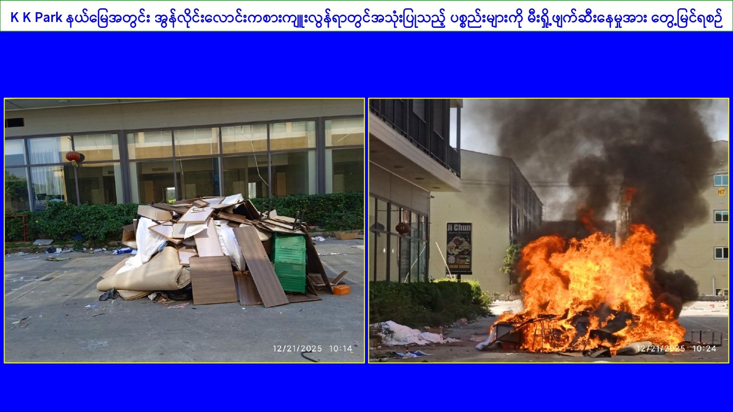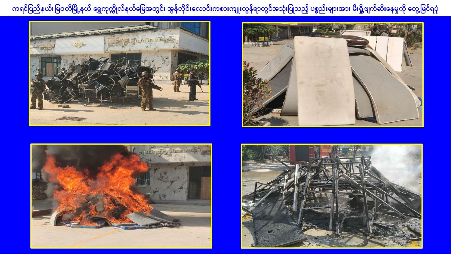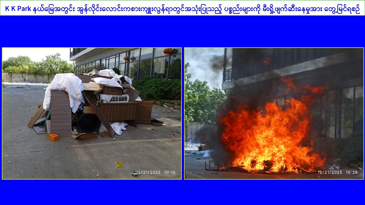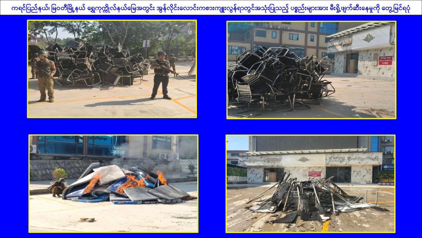 ၎င်းအပြင် မြဝတီမြို့နယ်အတွင်းရှိ KK Park နယ်မြေနှင့် ရွှေကုက္ကိုလ်နယ်မြေတို့၌ အွန်လိုင်းလိမ်လည်လောင်းကစားမှုကျူးလွန်ရာတွင် အသုံးပြုသည့်ပစ္စည်းများအား ထပ်မံ၍ အသုံးပြုနိုင်ခြင်းမရှိစေရန်အတွက် ယနေ့တွင်လည်း စနစ်တကျမီးရှို့ဖျက်ဆီးခဲ့ကြောင်း သိရှိရသည်။