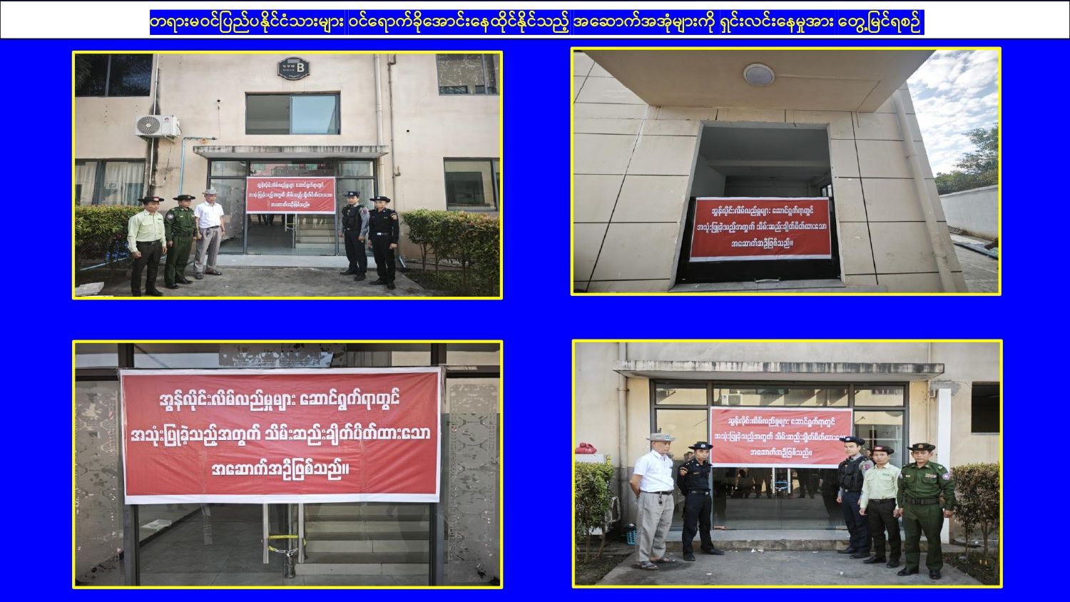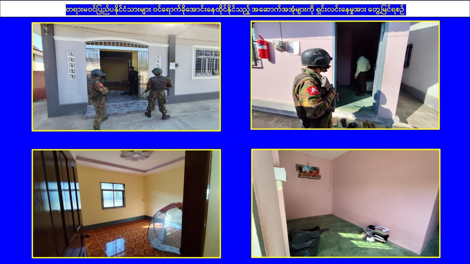 ထို့ပြင် ကရင်ပြည်နယ်၊ မြဝတီမြို့နှင့် ပတ်ဝန်းကျင်ဒေသတစ်ဝိုက်ရှိ အဆောက်အအုံများ၌ တရားမဝင်ပြည်ပနိုင်ငံသားများ ဝင်ရောက်နေထိုင်ခြင်းနှင့်အွန်လိုင်းလိမ်လည်လောင်းကစားမှုများ လုပ်ကိုင်ဆောင်ရွက်ခြင်းမရှိစေရေးအတွက် လုံခြုံရေးတပ်ဖွဲ့ဝင်များ၊ အုပ်ချုပ်ရေးအဖွဲ့အစည်းများနှင့် ဒေသတွင်းတာဝန်ရှိသူများအပါအဝင် အဖွဲ့စုံပါဝင်သည့် ပူးပေါင်းအဖွဲ့ဖြင့် ဒီဇင်ဘာ ၈ ရက်မှစတင်၍ ရှာဖွေရှင်းလင်းဆောင်ရွက်ခဲ့ရာ ယနေ့တွင်လည်း တရားမဝင် ၁ ထပ်အဆောက်အအုံ ၇ လုံးကို စစ်ဆေးရှာဖွေနိုင်ခဲ့သဖြင့် ယနေ့အချိန်ထိ အဆောက်အအုံစုစုပေါင်း ၄၄၅ လုံးကို စစ်ဆေးရှာဖွေနိုင်ခဲ့ပြီး အဆိုပါအဆောက်အအုံများအနက်မှ အွန်လိုင်းလောင်းကစားကျူးလွန်ရာတွင်အသုံးပြုသည့် အဆောက်အအုံ ၁၂ လုံးအားစစ်ဆေးဖော်ထုတ်နိုင်ခဲ့ပြီး ယနေ့တွင် အဆောက်အအုံ ၄ လုံးကို စတင်ချိတ်ပိတ်သိမ်းဆည်းခဲ့သည်။