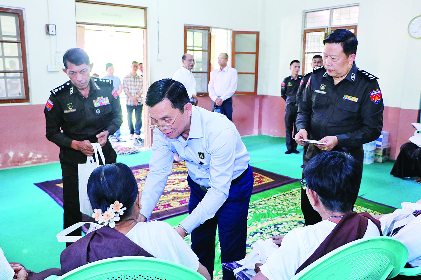 ထို့နောက် ပြည်ထောင်စုဝန်ကြီးသည် အဘိုးအဘွားများအနေဖြင့် မကြာမီကျင်းပတော့မည့် အထွေထွေရွေးကောက်ပွဲတွင် မဲပေးပိုင်ခွင့်မဆုံးရှုံးစေရေးနှင့် နိုင်ငံသားစိစစ်ရေးကတ် ကိုင်ဆောင်မဲပေး နိုင်ရေး၊ နိုင်ငံသားကတ်ပျောက်ဆုံး၊ ပျက်စီးပါက သက်ဆိုင်ရာ မြို့နယ်လဝကရုံးသို့ ပြန်လည်လျှောက်ထားရယူကိုင်ဆောင်နိုင်ရေး၊ အဘိုးအဘွားများ၏ Biographic/ Biometric ကောက်ယူကာ Unique ID နံပါတ် ဆောင်ရွက်ထုတ်ပေးနိုင်ရေး၊ အဘိုးအဘွားများ၏ နေထိုင်စားသောက်ရေးနှင့် ကျန်းမာရေး စောင့်ရှောက်မှုဆိုင်ရာ ဆောင်ရွက်ပေးမှုအခြေအနေများကို လှည့်လည်ကြည့်ရှုမေးမြန်းပြီး အဘိုးအဘွားတစ်ဦးချင်းထံ အလှူငွေနှင့် စားသောက်ဖွယ်ရာများ ကိုလည်းကောင်း၊ ဘိုးဘွားရိပ်သာအတွက် ဆိုလာမီးများနှင့် စားသောက်ဖွယ်ရာများကိုလည်းကောင်း ပေးအပ်လှူဒါန်းသည်။