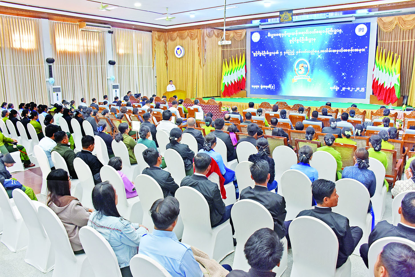 ထို့နောက် စီးပွားရေးနှင့်ကူးသန်းရောင်းဝယ်ရေးဝန်ကြီးဌာန၊ မူပိုင်ခွင့်ဦးစီးဌာန ညွှန်ကြားရေးမှူးချုပ်က နိုင်ငံတော်၏ မူပိုင်ခွင့်စနစ်တစ်ရပ် ဖွံ့ဖြိုးတိုးတက်ရန် ဆောင်ရွက်ခဲ့မှု အခြေအနေကို ရှင်းလင်းတင်ပြပြီး ဝန်ထမ်းများအား ဆုချီးမြှင့်ခြင်းနှင့် နှစ်ပတ်လည်နေ့အထိမ်းအမှတ် ဂုဏ်ပြု တေးသီချင်းများဖြင့် ဖျော်ဖြေတင်ဆက်ခြင်းတို့ကို ဆောင်ရွက်ကြသည်။