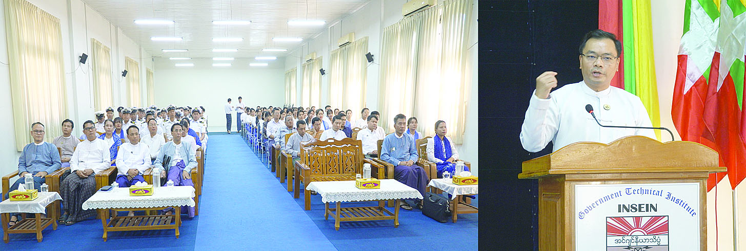 အခမ်းအနားတွင် ဒုတိယဝန်ကြီးက အမျိုးသားအဆင့် လျှပ်စစ်သုံးယာဉ်နှင့် ဆက်စပ်လုပ်ငန်းများ ဖွံ့ဖြိုးတိုးတက်ရေး ဦးဆောင်ကော်မတီ၏ ညွှန်ကြားချက်အရ ဆက်စပ်ဌာနများ၊ ပြည်သူတို့နှင့် ပြင်ပလုပ်ငန်းရှင်များ၏ နည်းပညာလိုအပ်ချက်များနှင့် ကိုက်ညီသောသင်တန်းကို ယနေ့ဖွင့်လှစ်ခြင်းဖြစ် ကြောင်း၊ ကမ္ဘာ့ကားဈေးကွက်သည် ၂၁ ရာစုနှစ်၌ အလျင်မြန်ဆုံး ပြောင်းလဲမှုကို ကြုံတွေ့နေရကြောင်း၊ EV ခေတ်သို့ ပြောင်းလဲမှုများ၏ အဓိကမောင်းနှင်အားသည် နည်းပညာထိပ်ဆုံးနေရာအတွက် ပြိုင်ဆိုင်မှုနှင့် စီးပွားရေးဆွဲဆောင်မှုများကို တွေ့ရှိရကြောင်း၊ ယင်းသို့ ပြိုင်ဆိုင်မှု ပြင်းထန်ကာ မြန်ဆန်စွာ ဖွံ့ဖြိုးနေသော EV ခေတ်အတွင်း မိမိတို့နိုင်ငံတွင်လည်း EV သုံးစွဲမှုများ တစ်ရှိန်ထိုး မြင့်တက်လာကြောင်း၊ သို့ဖြစ်ရာ ပြည်သူတို့ ဘေးအန္တရာယ်ကင်းရှင်းစွာ အရည်အသွေးပြည့်မီသည့် EV များကို ဝယ်ယူသုံးစွဲနိုင်ရေးအတွက် EV ဆိုင်ရာပြဋ္ဌာန်းပြီး စံချိန်စံညွှန်းများကို သိရှိနားလည်ရန်အပြင် အရည်အသွေးစစ်ဆေးခြင်းဆိုင်ရာ နည်းပညာများကို ကျွမ်းကျင်မှုရှိရန် လိုအပ်လာသဖြင့် သင်တန်းသားများသည် ပြည်သူတို့ အရည်အသွေးပြည့်မီသည့် EV များ သုံးစွဲနိုင်စေရေးအတွက် အမှန်တကယ်စစ်ဆေးပေးနိုင်သည့် ကျွမ်းကျင်ပညာရှင်များ ဖြစ်စေရေးအတွက် သင်တန်းချိန်များကို တန်ဖိုးထား၍ မဆုတ်မနစ် ကြိုးပမ်းသင်ယူလေ့ကျင့်ကြရန် လိုအပ်ကြောင်း တိုက်တွန်းမှာကြားသည်။