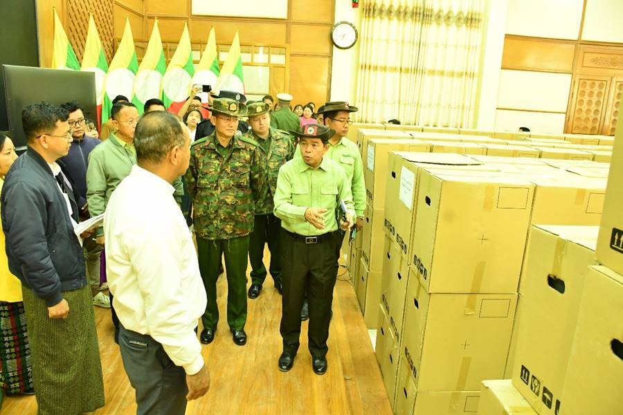 ၂၀၂၅ ခုနှစ်၊ ပါတီစုံဒီမိုကရေစီအထွေထွေရွေးကောက်ပွဲအောင်မြင်စွာ ကျင်းပပြုလုပ်နိုင်ရေးအတွက် ရှမ်းပြည်နယ် (တောင်ပိုင်း)၊ တောင်ကြီးမြို့၊ ပြည်နယ်လွှတ်တော်ခန်းမဆောင်၌ ခရိုင်၊ မြို့နယ်၊ ရပ်ကွက်များမှ မြန်မာအီလက်ထရောနစ်မဲပေးစက် (MEVM) စက်များ လာရောက်ထုတ်ယူမှုအခြေအနေများကို ယနေ့နံနက်ပိုင်းတွင် ရှမ်းပြည်နယ်အစိုးရ အဖွဲ့ဝန်ကြီးချုပ် ဦးအောင်အောင်၊ အရှေ့ပိုင်းတိုင်းစစ်ဌာနချုပ် တိုင်းမှူး ဗိုလ်မှူးချုပ် ကျော်နိုင်ဦးနှင့် တာဝန်ရှိသူများက လိုက်လံကြည့်ရှုစစ်ဆေးပြီး လိုအပ်သည်များ ပေါင်းစပ်ညှိနှိုင်းဆောင်ရွက်ပေးသည်။