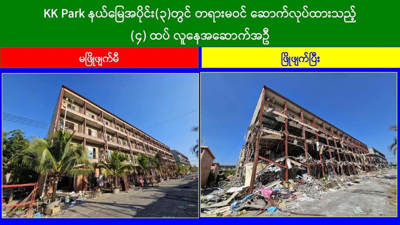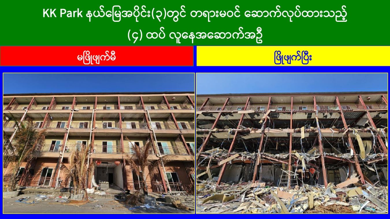 KK Park နယ်မြေအတွင်း အွန်လိုင်းလိမ်လည်လောင်းကစားမှုကျူးလွန်ရာတွင် အသုံးပြုသည့် တရားမဝင်အဆောက်အအုံ ၄၉၉ လုံးကို စနစ်တကျဖြိုချဖျက်ဆီးပြီးစီး၊ အွန်လိုင်းလိမ်လည်လောင်းကစားမှုကျူးလွန်ရာတွင် အသုံးပြုခဲ့သည့် ပစ္စည်းများအား စနစ်တကျဆက်လက်မီးရှို့ဖျက်ဆီး