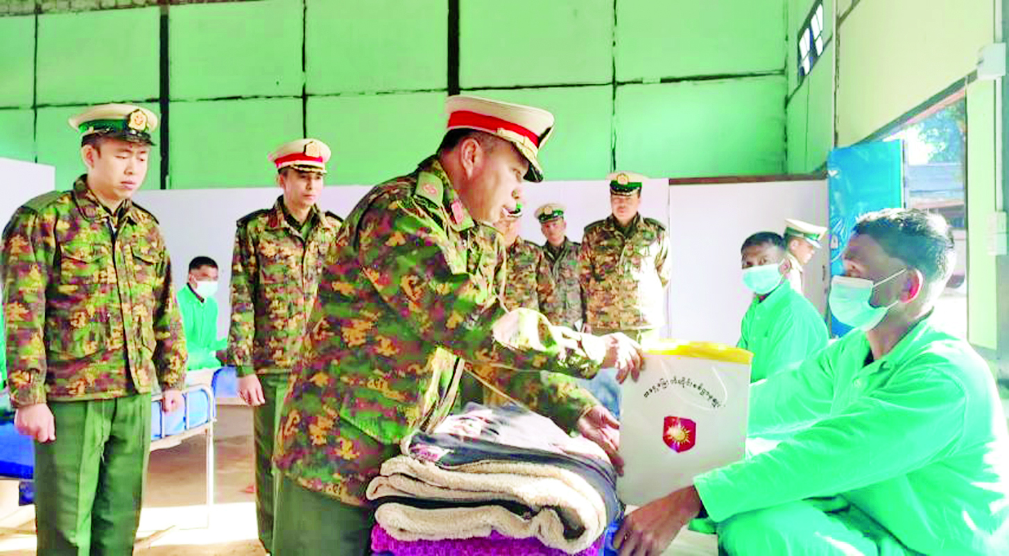ထိုသို့ဆောင်ရွက်ပေးလျက်ရှိရာ ယနေ့တွင် ရှမ်းပြည်နယ်(မြောက်ပိုင်း) လားရှိုးမြို့ရှိ တပ်မတော်ဆေးရုံ၌ တက်ရောက်ဆေးကုသမှုခံယူလျက်ရှိသော အရာရှိ၊ စစ်သည်၊ မိသားစုဝင်များအား အရှေ့မြောက်တိုင်းစစ်ဌာနချုပ်တိုင်းမှူး ဗိုလ်မှူးချုပ်အေးမင်းဦးနှင့် တာဝန်ရှိသူများက သွားရောက်ကြည့်ရှု၍ တစ်ဦးချင်း၏ ရောဂါဖြစ်ပွားမှု၊ ဆေးဝါးကုသပေးထား မှုနှင့် ကျန်းမာရေးတိုးတက်ကောင်းမွန်မှု အခြေအနေများကို ရင်းရင်းနှီးနှီးမေးမြန်းအားပေးစကား ပြောကြားပြီး အာဟာရဖြည့်စားသောက်ဖွယ်ရာများ ပေးအပ်ခဲ့ကြောင်း သိရသည်။