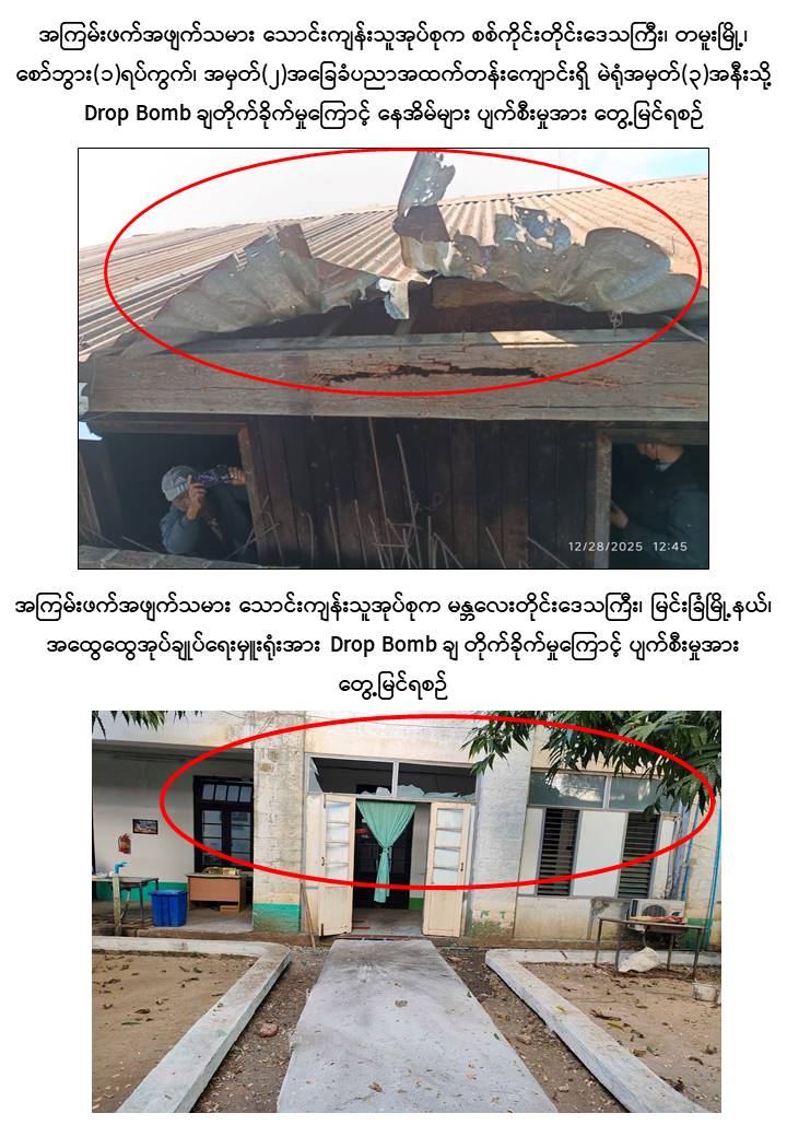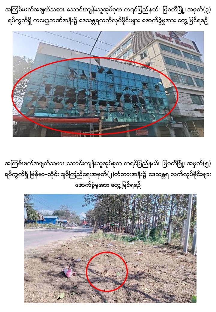 ထို့သို့လုပ်ဆောင်ခဲ့ကြရာ အကြမ်းဖက်အဖျက်သမားသောင်းကျန်းသူအုပ်စုများအနေဖြင့် ပါတီစုံဒီမိုကရေစီအထွေထွေရွေးကောက်ပွဲအပိုင်း (၁) ကျင်းပခဲ့သည့် ဒီဇင်ဘာ ၂၈ ရက်နေ့၌ ကချင်ပြည်နယ်၊ မြစ်ကြီးနားမြို့၊ ရွှေညောင်ပင်ရပ်ကွက်၊ အမှတ် (၁၁) အခြေခံ ပညာအထက်တန်းကျောင်းရှိ မဲရုံအမှတ် (၈၂) ၌ လက်လုပ်အသံမိုင်းဖောက်ခွဲခြင်း၊ ကယားပြည်နယ်၊ လွိုင်ကော်မြို့၊ ရွှေတောင်ရပ်ကွက်နှင့် မင်္ဂလာရပ်ကွက်အတွင်းသို့ ၁၀၇ မမ လက်လုပ်ဗုံးသီးများဖြင့် ပစ်ခတ်တိုက်ခိုက်ခြင်း၊ ကရင်ပြည်နယ်၊ မြဝတီမြို့၊ အမှတ် (၃) ရပ်ကွက်ရှိ ကမ္ဘောဇဘဏ်အနီးနှင့် အမှတ် (၅) ရပ်ကွက်ရှိ မြန်မာ-ထိုင်း ချစ်ကြည်ရေး အမှတ် (၂) တံတားအနီးတို့၌ ဒေသန္တရလက်လုပ်မိုင်းများ ဖောက်ခွဲခြင်း၊ တနင်္သာရီတိုင်းဒေသကြီးအစိုးရအဖွဲ့ရုံးအား Fixed Wing ဖြင့် ပစ်ခတ်ခြင်း၊ ခမောက်ကြီးမြို့၊ အောင်ချမ်းသာကျေးရွာအုပ်စု၊ ယုဇနဆီအုန်းကုမ္ပဏီ၊ မာရမ်းပျိုးခြံမှ ဆန္ဒမဲပေးရန် မဲရုံသို့ သွားရောက်သည့် ဆီအုန်းခြံလုပ်သား ၁၇၀ ဦးအား တားဆီးခြင်း၊ စစ်ကိုင်းတိုင်းဒေသကြီး၊ ရွှေဘိုမြို့၊ အမှတ် (၃) ရပ်ကွက်ရှိ မဲရုံအမှတ် (၂) အနီးသို့ Drop Bomb ချတိုက်ခိုက်ခြင်း၊ စစ်ကိုင်းမြို့၊ တိုင်းရင်းသားလူငယ်များစွမ်းရည်ဖွံ့ဖြိုးရေးဒီဂရီကောလိပ်သို့ လက်လုပ်ရှော့တိုက်ဒုံး (၆) လုံးဖြင့် ပစ်ခတ်တိုက်ခိုက်ခြင်း၊ တမူးမြို့၊ စော်ဘွား (၁) ရပ်ကွက်၊ အမှတ် (၂) အခြေခံပညာအထက်တန်းကျောင်းရှိ မဲရုံအမှတ် (၃) အနီးသို့ Drop Bomb ချတိုက်ခိုက်ခြင်း၊ ကသာမြို့မြောက်ဖက်နှင့် တောင်ဖက်မှ လက်နက်ငယ်၊ လက်နက်ကြီးများဖြင့် နှောင့်ယှက်ပစ်ခတ်ခြင်း၊ မန္တလေးတိုင်းဒေသကြီး၊ မတ္တရာမြို့နယ်၊ နန်းတော်ကျွန်းကျေးရွာအတွင်းနှင့် အောင်မြေသာဇံမြို့နယ်အတွင်းတို့သို့ ၁၀၇ မမ ရှော့တိုက်ဒုံးများဖြင့် ပစ်ခတ်တိုက်ခိုက်ခြင်း၊ မြင်းခြံမြို့ ထွေ/အုပ်ရုံးအနီး၊ တရားရုံးအနီးနှင့် ဗဟိုအကျဉ်းထောင်ကြားလမ်းအနီးတို့သို့ Drop Bomb ချတိုက်ခိုက်ခြင်း၊ ညောင်ဦးမြို့နယ်၊ ဇုန်အမှတ် (၉)၊ မဲရုံအမှတ် (၆၄)၊ အခြေခံ ပညာမူလတန်းကျောင်း (ပြွန်) စာသင်ကျောင်းအနီးသို့ လက်နက်ငယ်များဖြင့် လာရောက်နှောက်ယှက်ပစ်ခတ်တိုက်ခိုက်ခြင်းစသည့် အကြမ်းဖက်အဖျက်အမှောင့်လုပ်ရပ်များကို ဒီဇင်ဘာလ ၂၇ ရက်နေ့ ညနေမှ ၂၈ ရက်နေ့ ညနေပိုင်းအထိ အပိုင်း (၁) မဲဆန္ဒနယ် (၁၀၂) မြို့နယ်အနက် မြို့နယ် (၁၁) ခုတို့၌ နှောင့်ယှက်မှုများ ပြုလုပ်ခဲ့ကြရာ ပြည်သူ ၅ ဦးခန့်သာ အနည်းငယ်ထိခိုက်ဒဏ်ရာရမှုဖြစ်ပွားခဲ့သော်လည်း လွတ်လပ်၍ တရားမျှတပြီး ဂုဏ်သိက္ခာရှိသည့် ပါတီစုံဒီမိုကရေစီအထွေထွေရွေးကောက်ပွဲသို့ နှောင့်ယှက်ပစ်ခတ်မှုနှင့် ခြိမ်းခြောက်မှုများကြားမှ အပိုင်း (၁) ကျင်းပသည့် (၁၀၂) မြို့နယ်