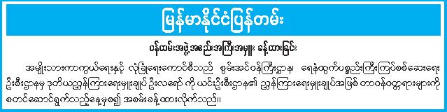 ဦးစီးဌာနနှင့် လုပ်ငန်းများ၏ ကြေညာချက်များ